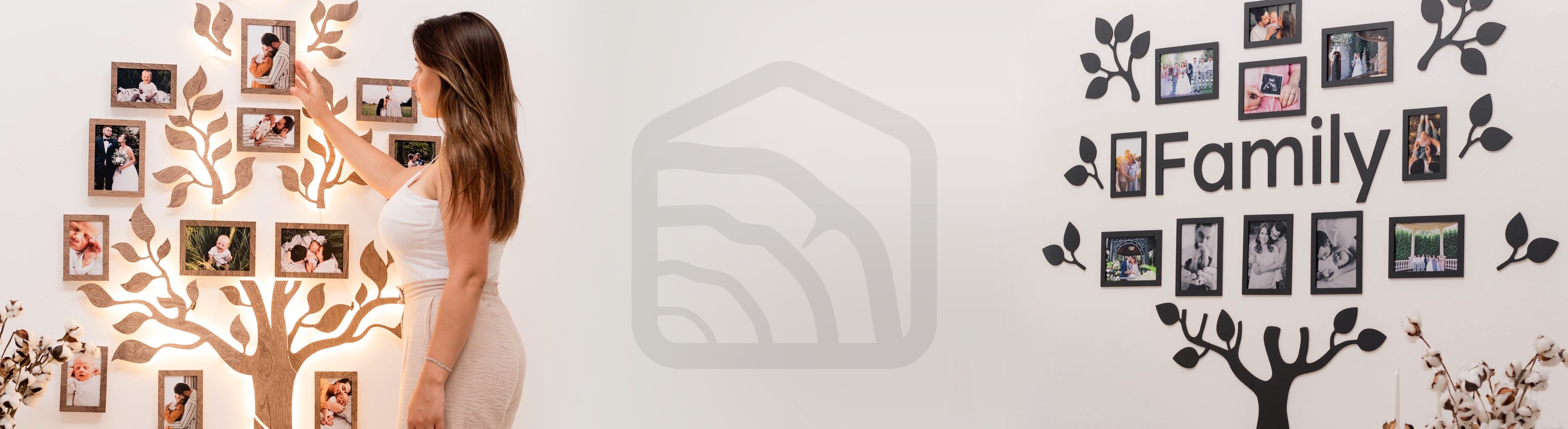 Each family tree set includes photo frames of various sizes to make the decor set complete and functional. We offer assembly manuals that you can download from the product page.