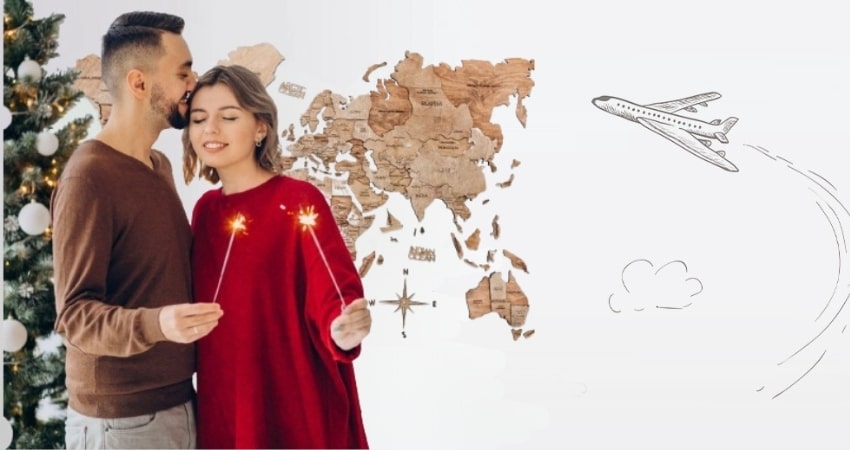 Werde glücklicher! Es geht doch um kleine Dinge, oder? Einen Weihnachtsbaum aufstellen, hier und da Lichterketten aufhängen und eine 3D-Weltkarte anbringen – manchmal ist das alles, was man braucht, um Freude und Glück zu empfinden.