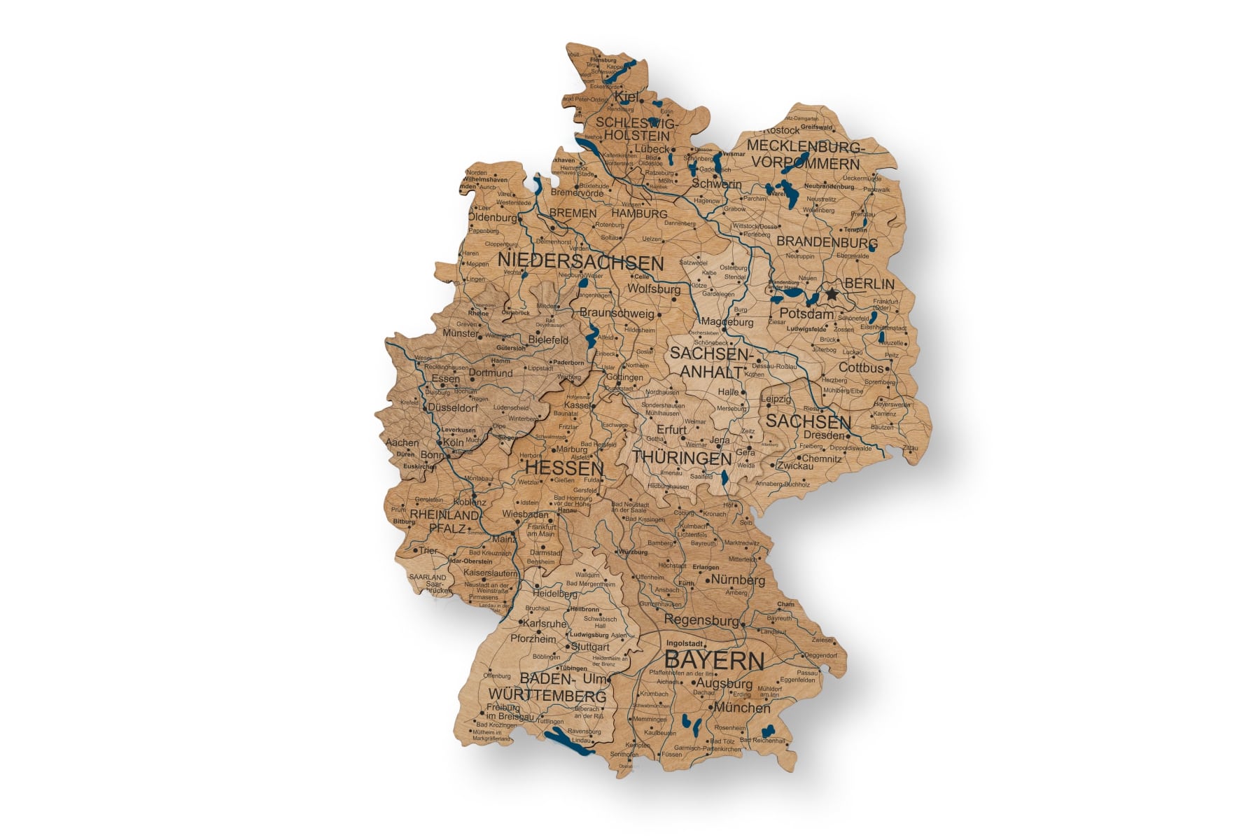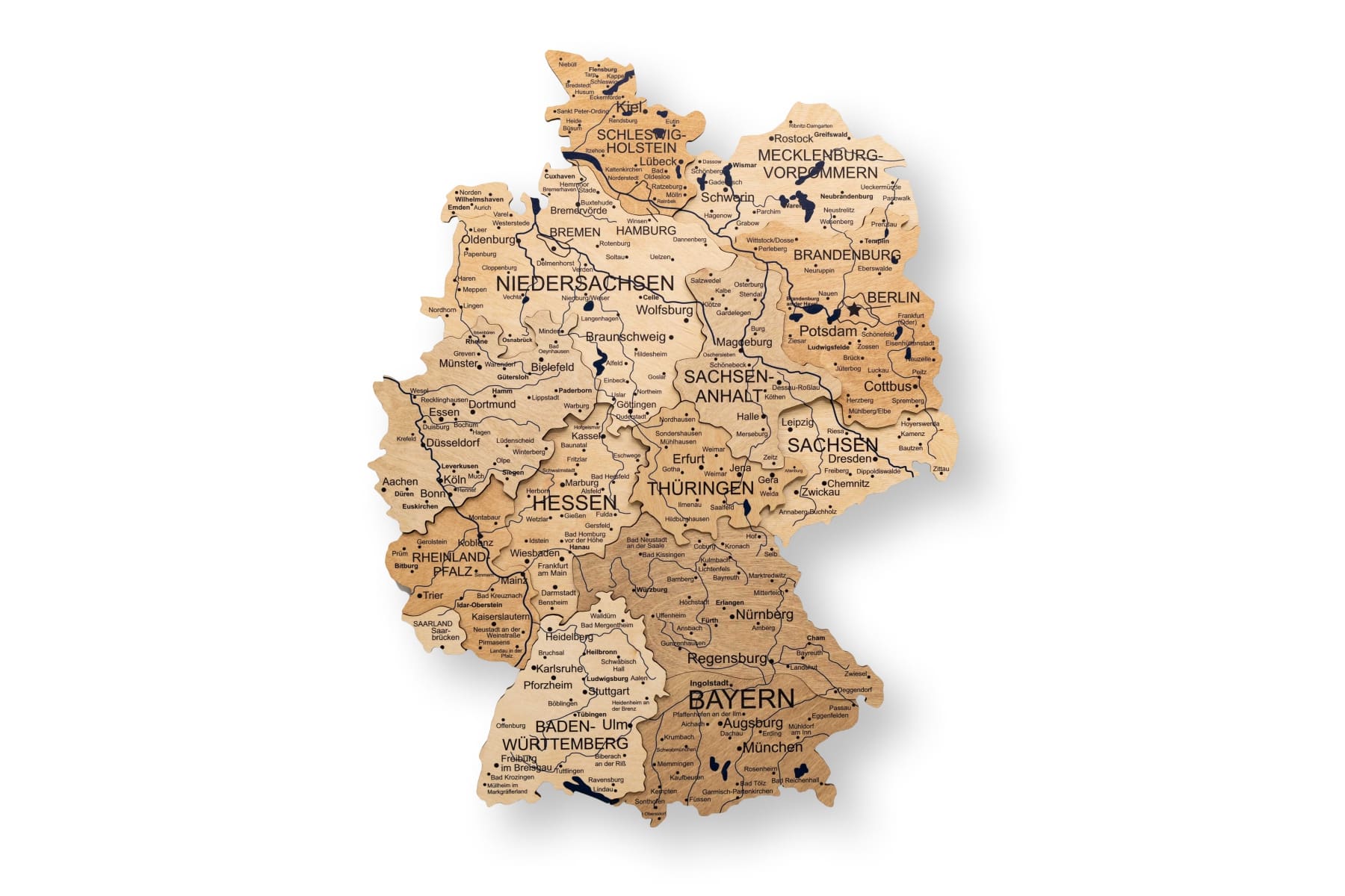 Made from high-quality birch plywood with a thickness of 4–9 mm. Each piece showcases the unique grain and texture of natural wood. Each map is one-of-a-kind due to natural wood variations in shade and pattern. Flawlessly handcrafted to impress — you will love what you see!