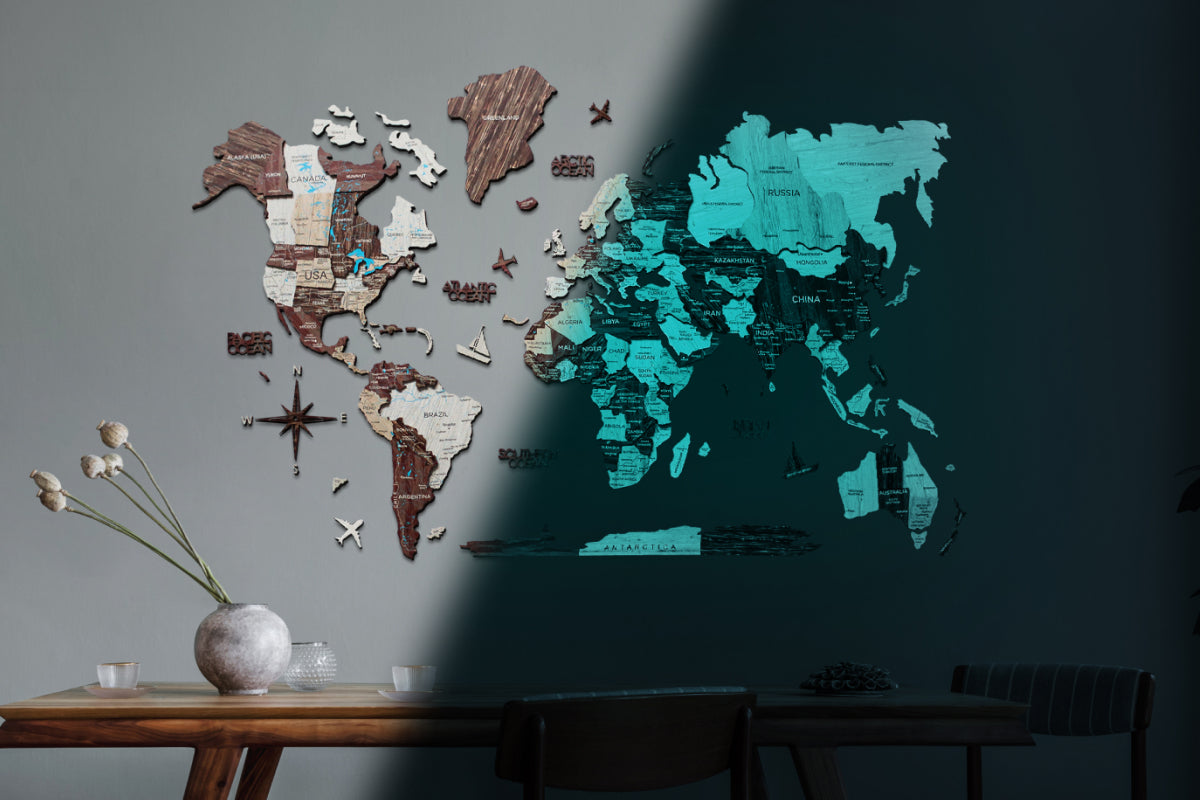 Die leuchtende Karte ist die perfekte Lösung, egal ob Sie einen klassischen Touch oder eine moderne Ästhetik suchen. Leuchtende Wanddekorationen bieten viele Vorteile. Erstens ziehen sie garantiert die Aufmerksamkeit Ihrer Gäste auf sich. Zweitens sind sie ungewöhnlich! Leuchtende Farben sieht man in Häusern und Wohnungen selten, sodass Sie jeden, der vorbeikommt, begeistern werden.