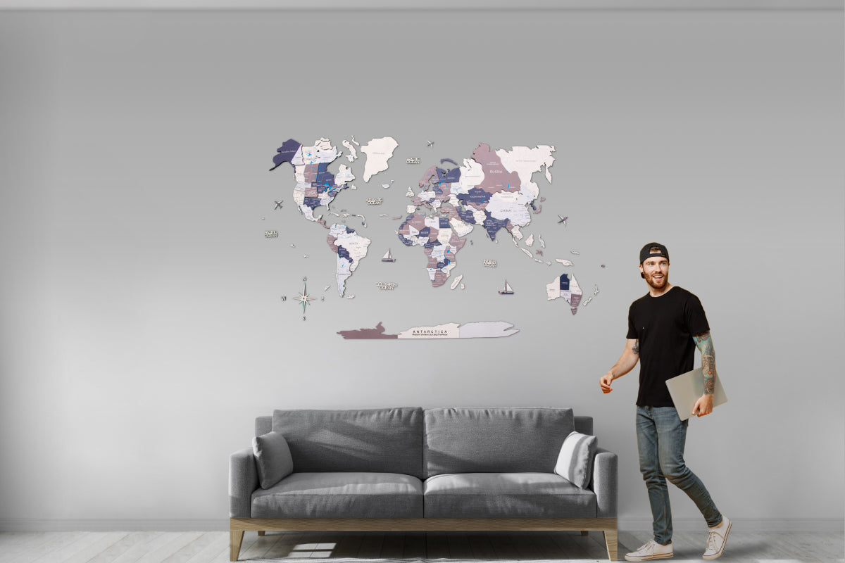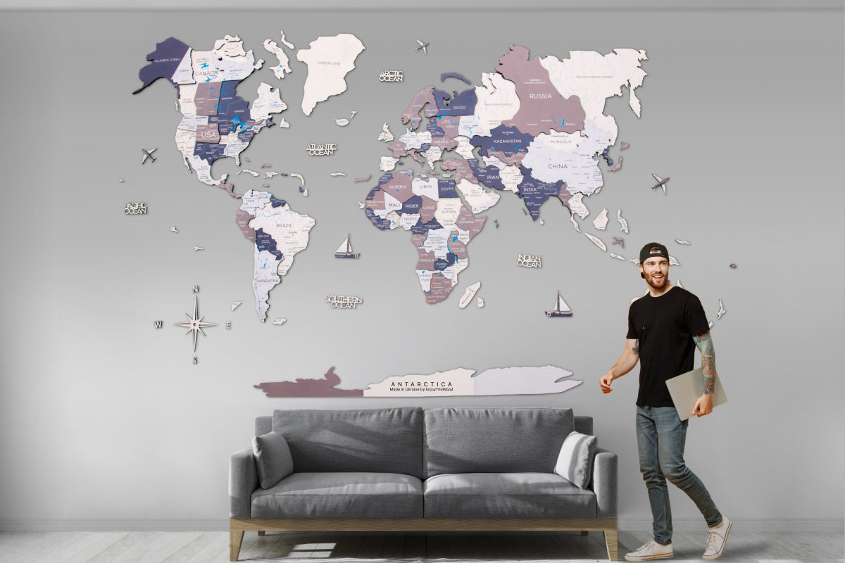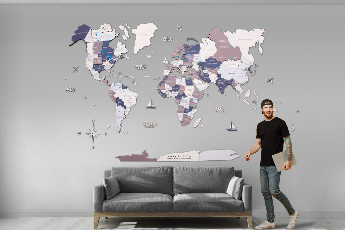 As the first creators of Wooden World Maps, Enjoy The Wood offers you original products backed by a strong patent portfolio, reaffirming our commitment to innovation and protection 🥇. Handcrafted in Ukraine, the luminous world maps are environmentally friendly. All the materials and paint used in production are safe and sustainable. We produce maps with all names of areas, regions, and localities written in English. You’re welcome to order a piece in your preferred language.