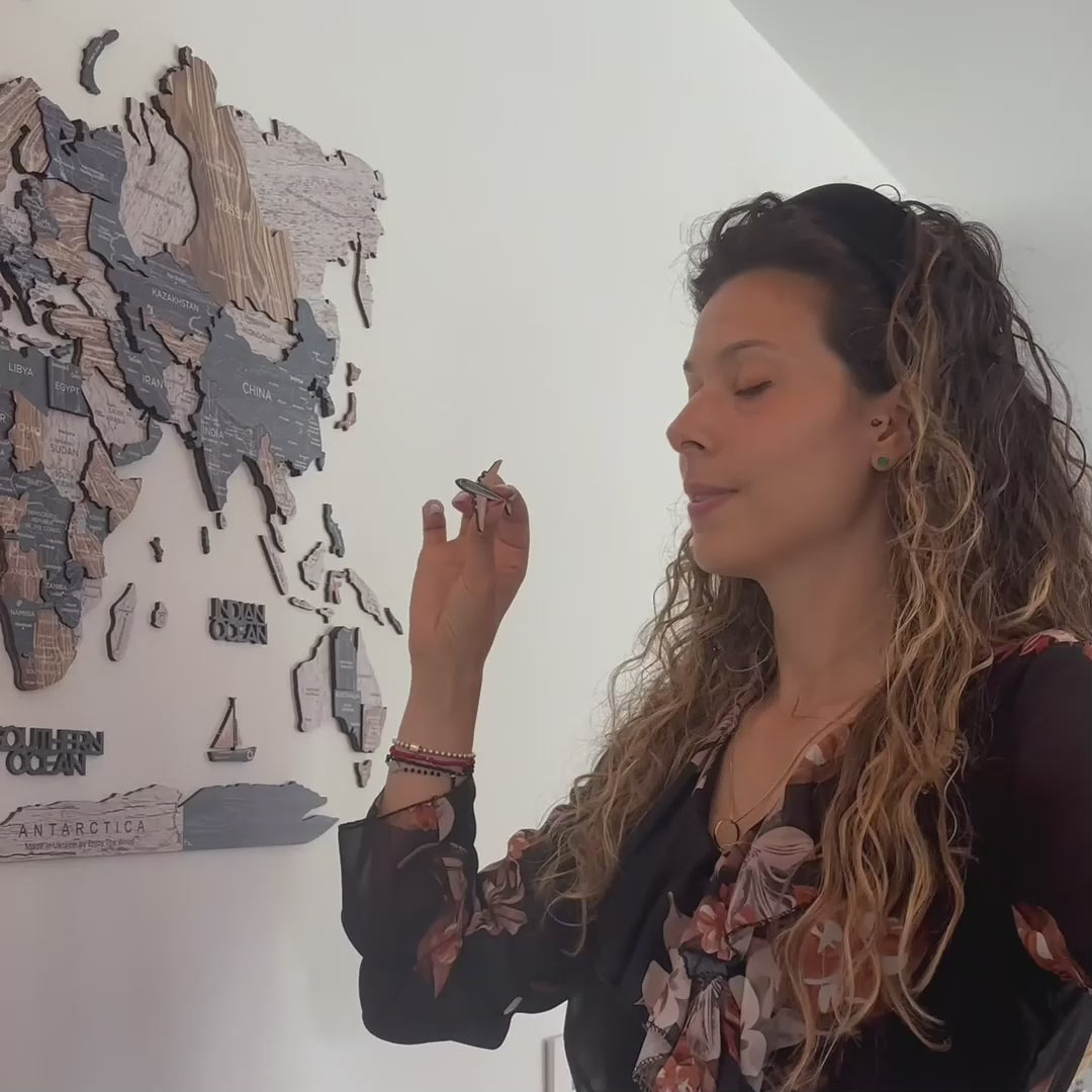 Schauen Sie sich diese perfekte Kombination aus Grau, Blau, dunklem Türkis, Braun, Weiß und… Oh, die Vielfalt der Farben auf der Karte aus der Mystery-Kollektion ist wirklich beeindruckend! Gleichzeitig haben wir unser Bestes getan, um sicher zustellen, dass die Farbpalette der auf Holz gemalten Weltkarte augen freundlich ist und in jeden Raum passt.