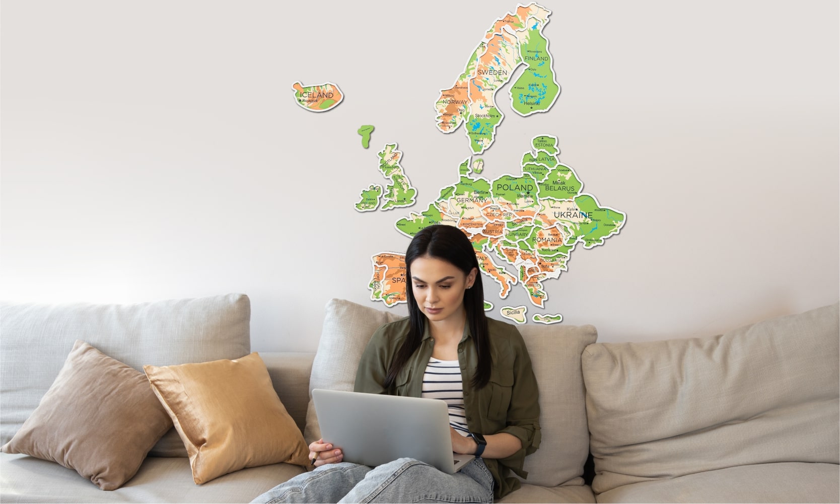 As the first creators of Wooden World Maps, Enjoy The Wood offers you original products backed by a strong patent portfolio, reaffirming our commitment to innovation and protection 🥇. Crafted from durable fiberwood, the 3D map from the Photo Maps collection is time-resistant. It’s eco-friendly and contains no toxic finishes. The map attaches to the wall with special double-sided sticky tape, which comes in the package. The assembling process is quite fast. The item comes with an instruction to help you.