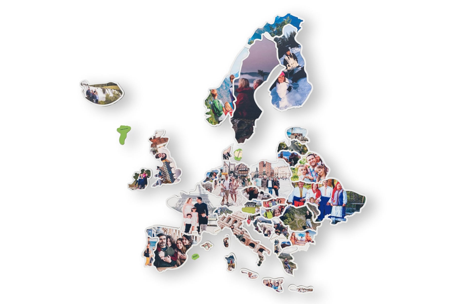 Das Fotokarte von Europa ermöglicht es Ihnen, berühmte Wahrzeichen und Ihre Lieblingsreiseziele zu präsentieren und so Ihre persönliche Verbindung zum Kontinent in Ihr Zuhause zu bringen.