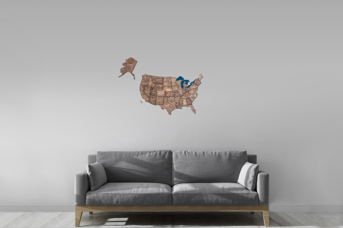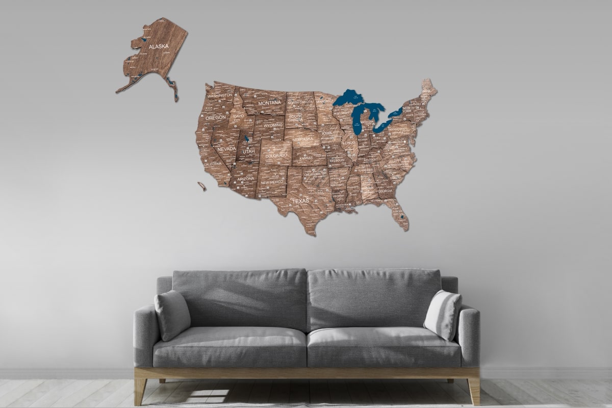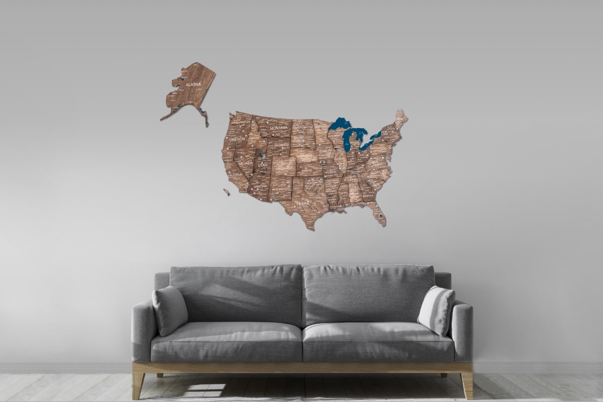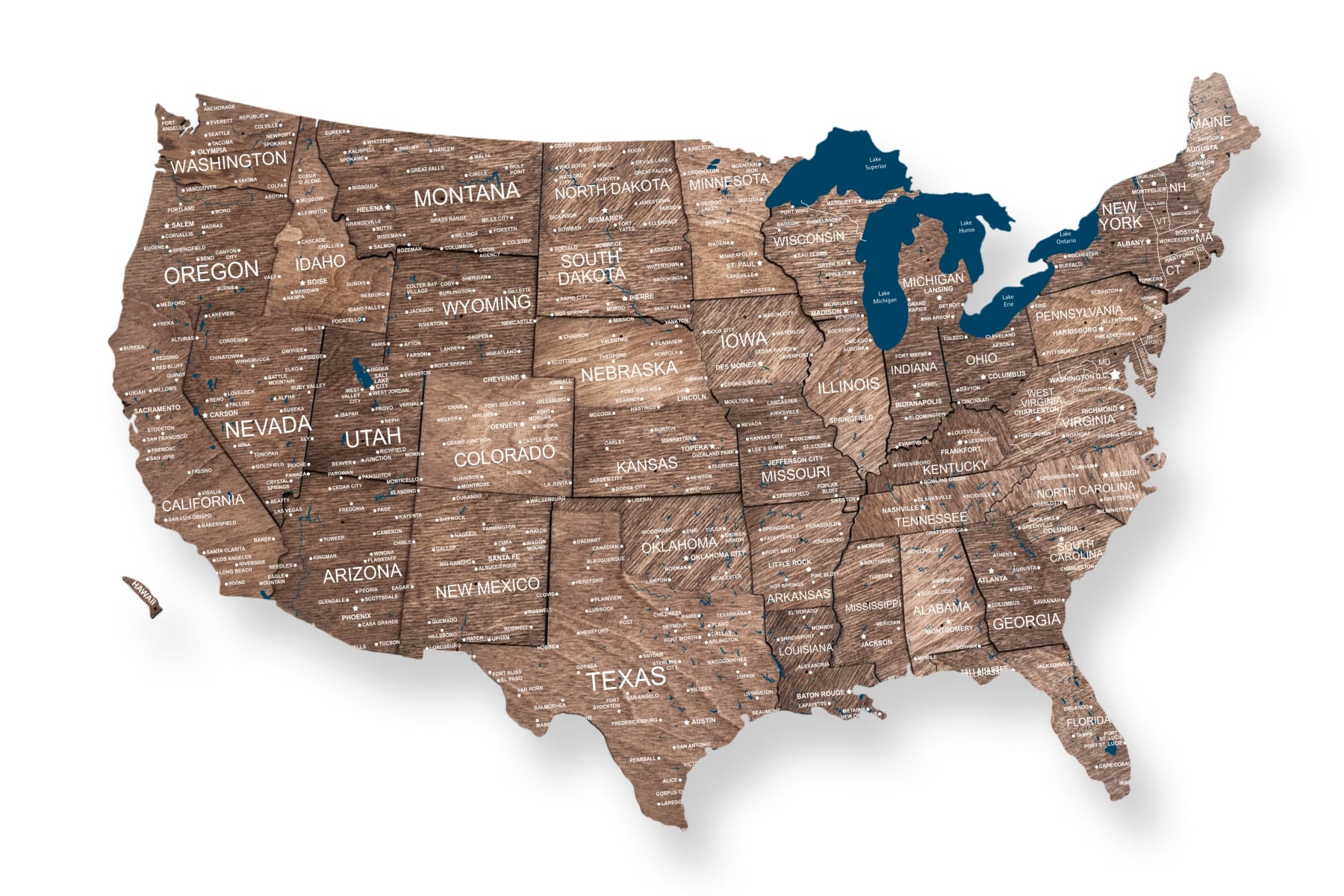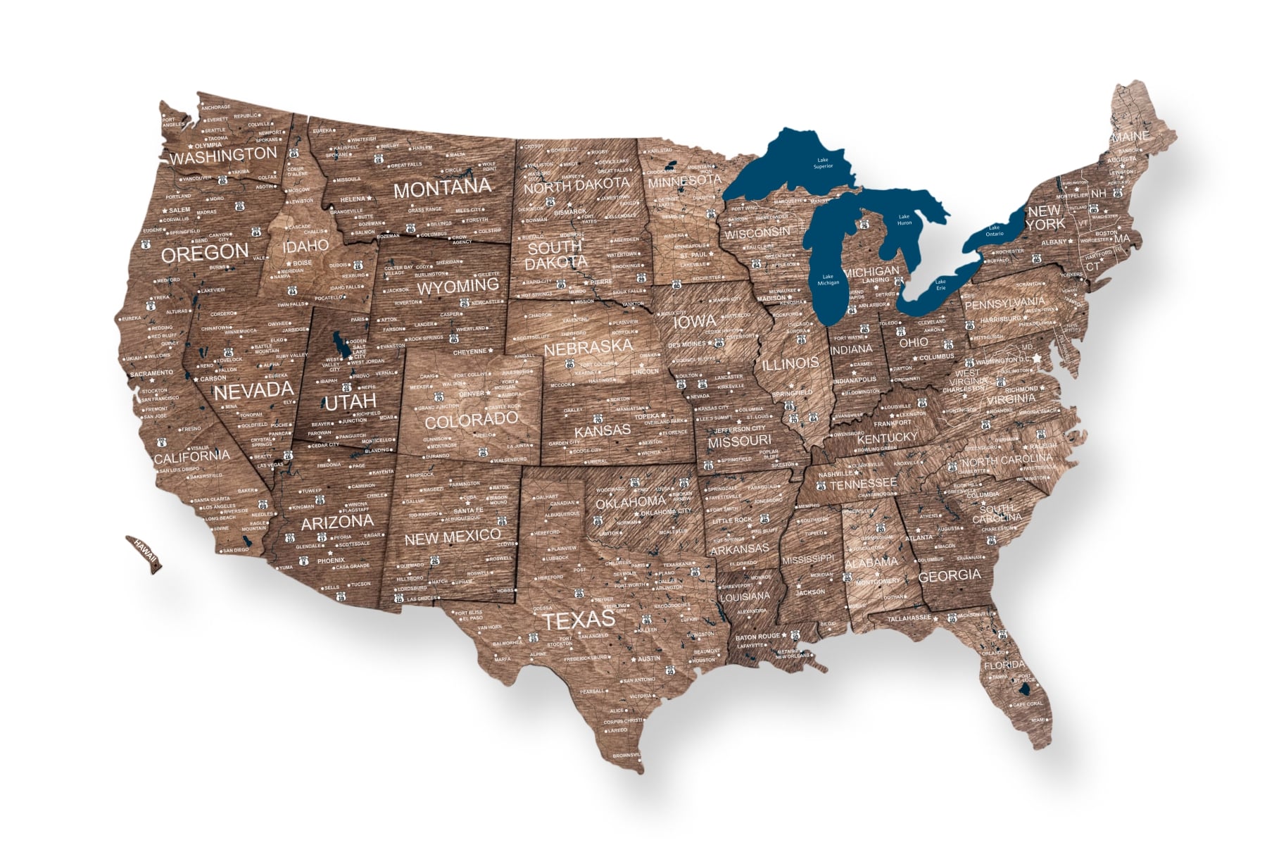 Eines der aufregendsten Features des 3D Holzkarte der Vereinigten Staaten ist ihr interaktiver Charakter. Die Karte enthält oft Ortsmarkierungen, sodass Sie sie personalisieren können, indem Sie Orte markieren, die Sie besucht haben oder erkunden möchten. Dadurch verwandelt sich die Karte von einem einfachen Dekorationsobjekt in eine dynamische Darstellung Ihrer Reisen und Abenteuer und regt Sie zur Planung Ihrer nächsten Reise an.
