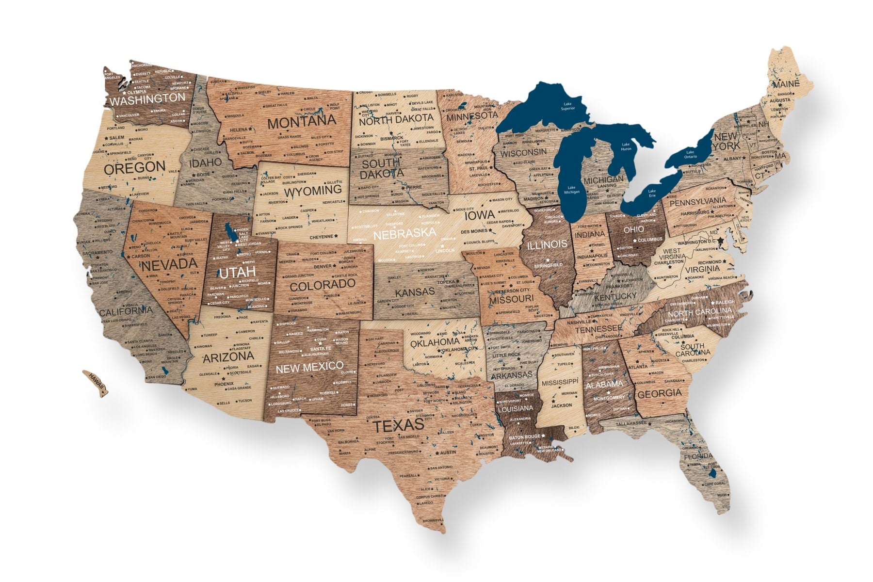 Entdecken Sie die Schönheit und Erhabenheit des Landes der Freiheit mit unserer Holzkarte aus der Smokey-Kollektion! Diese mit Präzision, Liebe zum Detail und Sorgfalt handgefertigte großes U.S. Wandkarte ist mehr als nur ein weiteres Dekorationsstück. Es ist ein umweltfreundliches und stilvolles Kunstwerk, das jeder Umgebung einen Hauch von Fernweh und Komfort verleiht. Entdecken Sie weitere Optionen in unserem USA Holzkarten Sammlung.