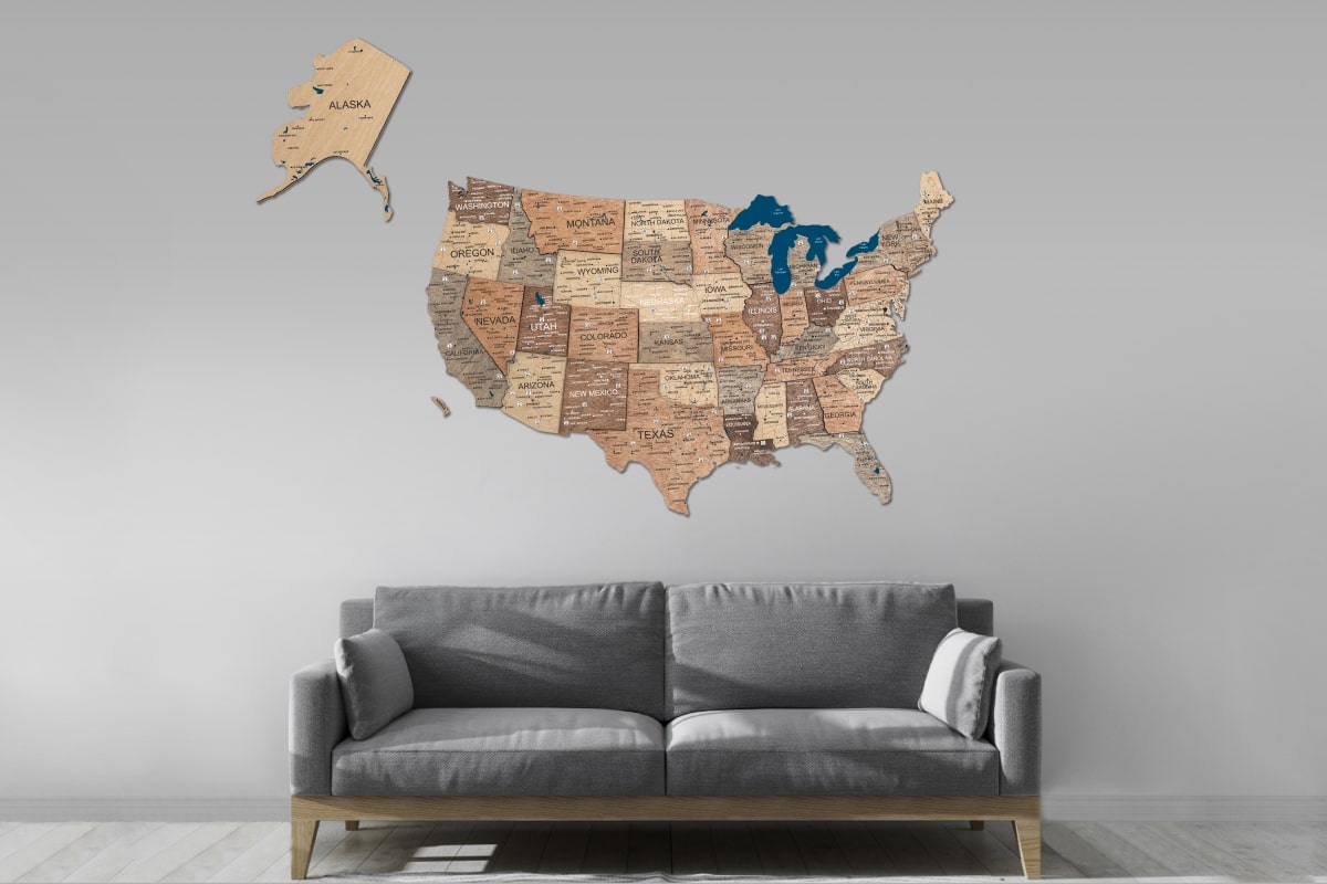 Unser Produkt aus der Smokey-Serie eignet sich perfekt für kleine, gemütliche Wohnungen und geräumige Wohnzimmer und ist mehr als nur ein Atlas! Es ist eine Illustration der Neuen Welt, ein fesselnder Gesprächsaufhänger, ein Geschichtserzähler, ein stilvolles Lehrmittel und eine wunderschöne Erinnerung an die Orte, die Sie besucht haben – und an die Abenteuer, die in den USA noch auf Sie warten.
