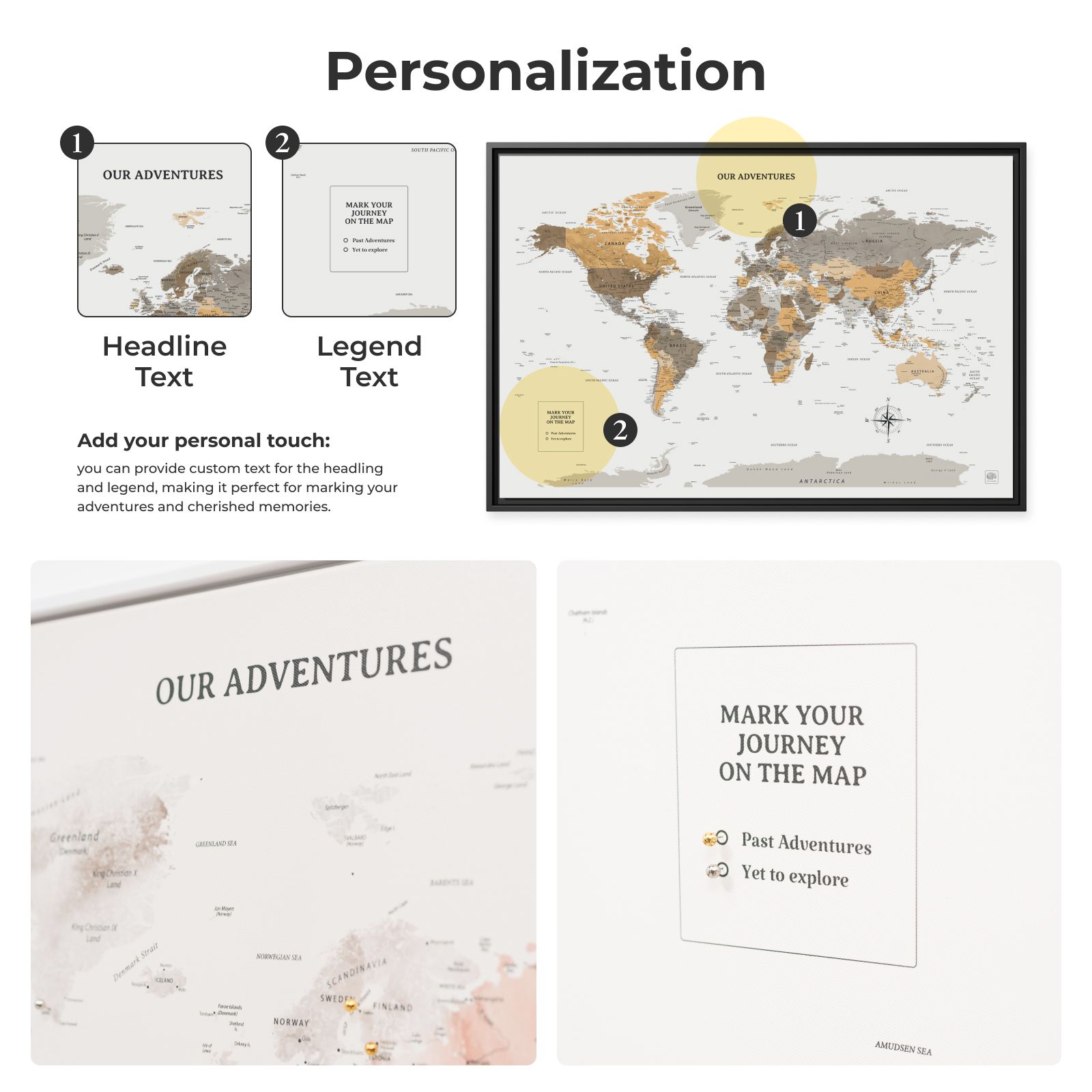 Die aus robustem Holz gefertigte und auf hochwertige Leinwand aufgezogene Karte ist in zwei Größen erhältlich: