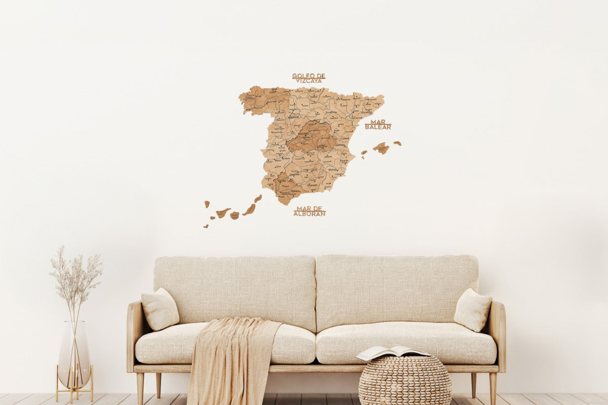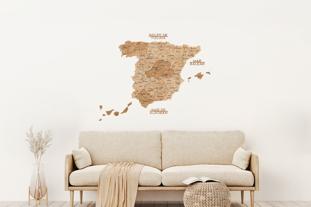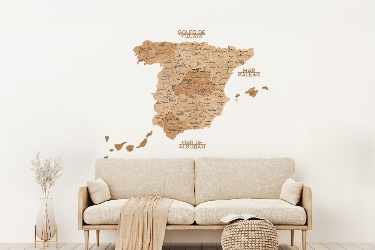 Jedes Holzelement ist präzise gefertigt und in einem satten Metallic-Ton gehalten, der Spaniens Städte, Inseln und Regionen mit moderner Eleganz in Szene setzt. Perfekt für Büros, Wohnzimmer oder Kreativräume – es wertet jede Wand sofort auf.