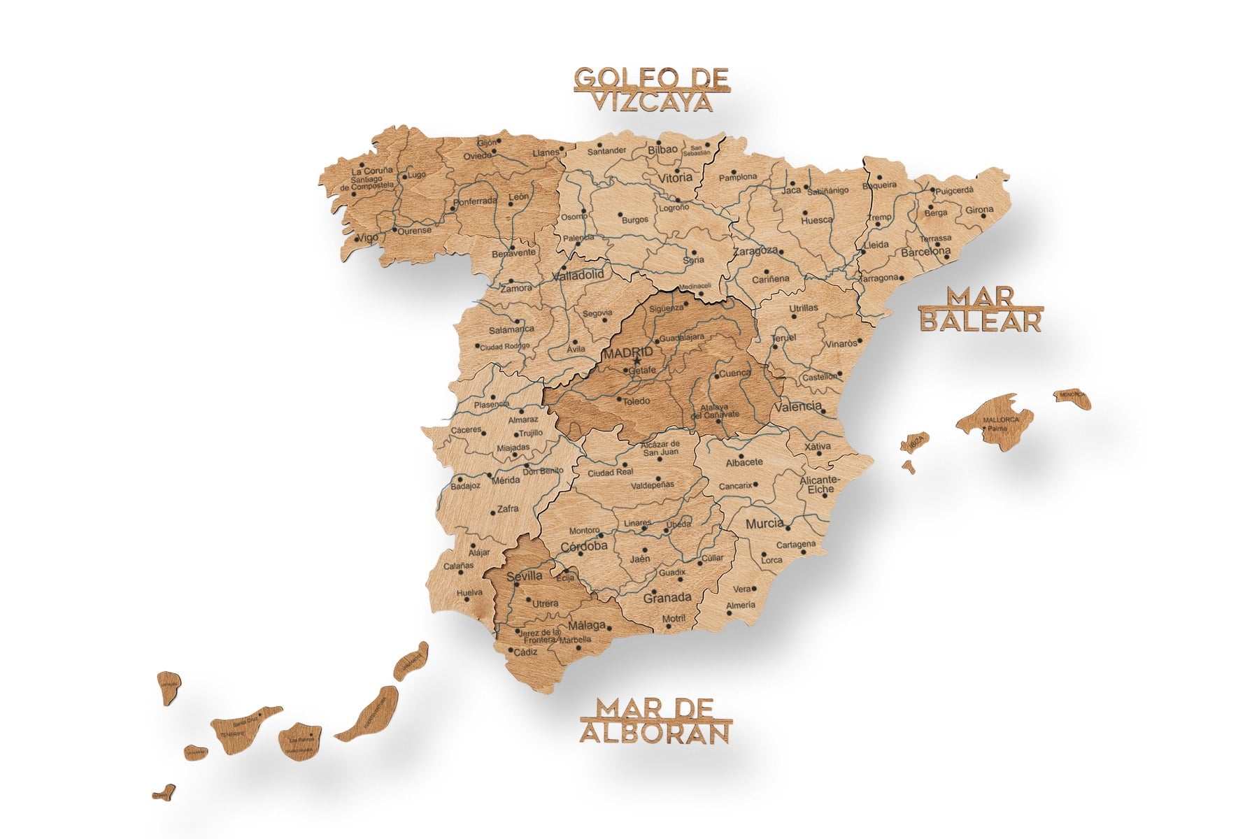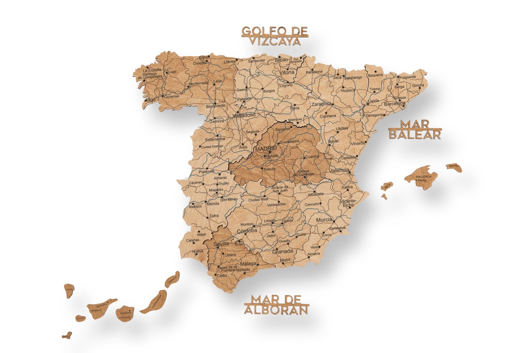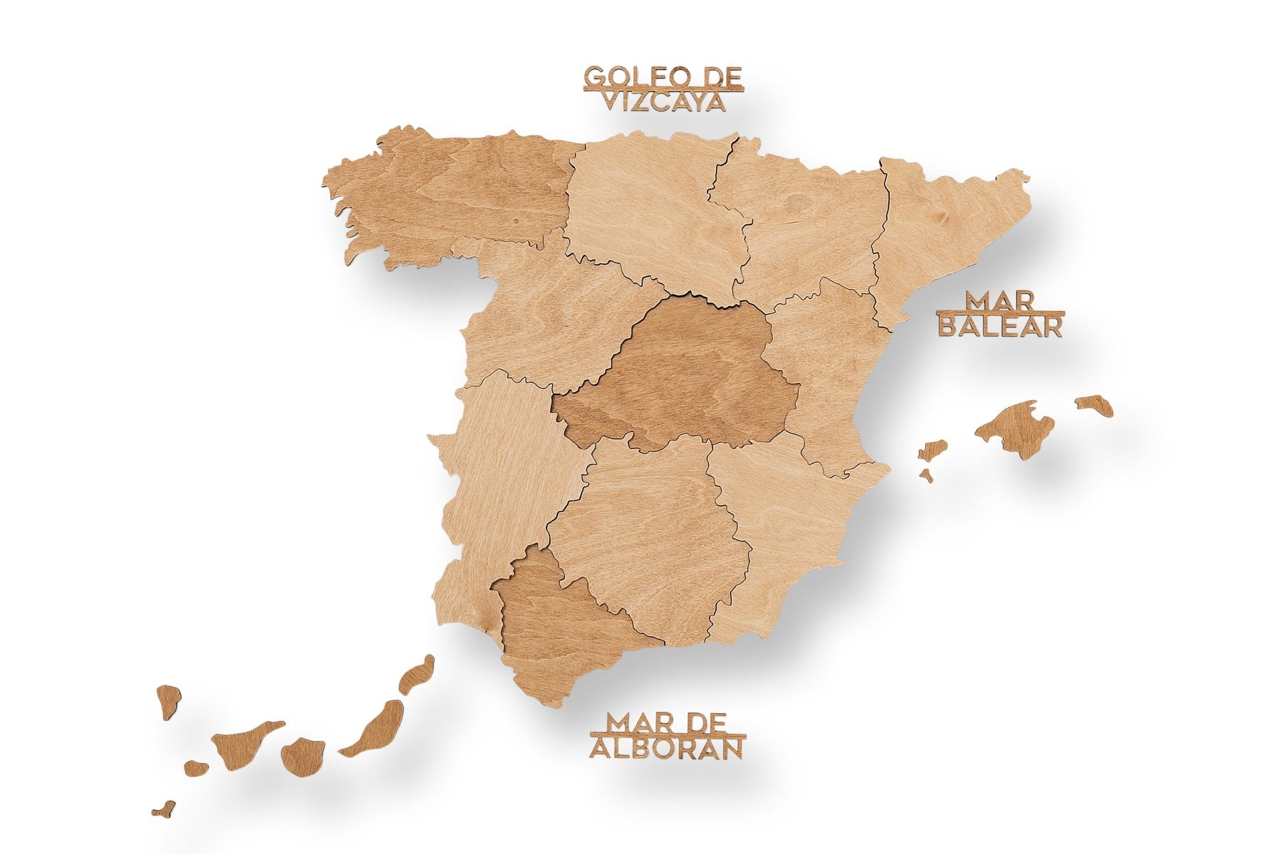 Jedes Holzelement ist präzise gefertigt und in einem satten Metallic-Ton gehalten, der Spaniens Städte, Inseln und Regionen mit moderner Eleganz in Szene setzt. Perfekt für Büros, Wohnzimmer oder Kreativräume – es wertet jede Wand sofort auf.