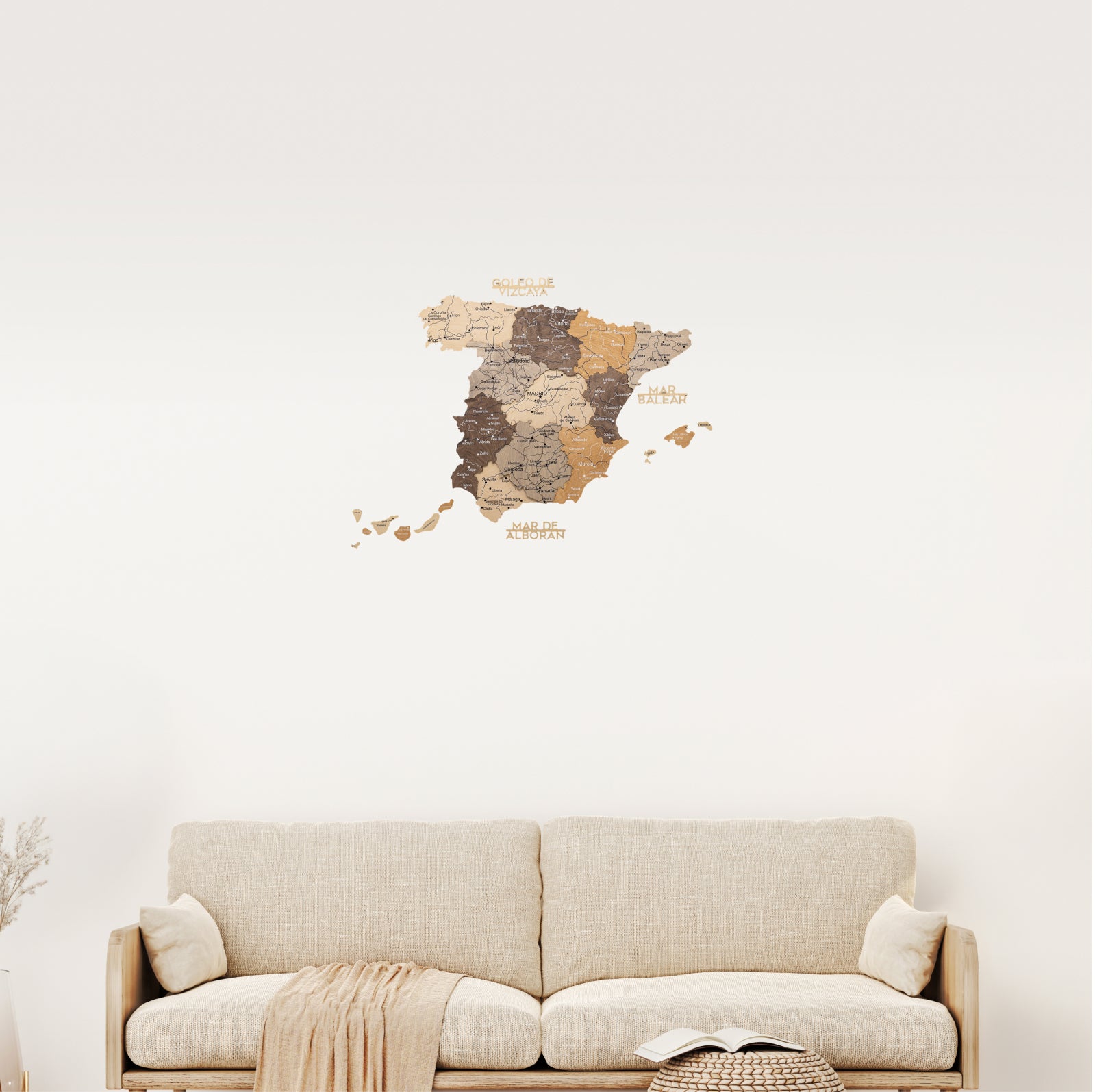 Jede Region ist aus Naturholz geschnitten und in harmonischen Farbtönen bemalt, wodurch hervorgehoben wird Spaniens einzigartige Geographie und Kultur. Das 3D-Reliefdesign lässt jedes Detail an Ihrer Wand wunderschön hervorstechen.