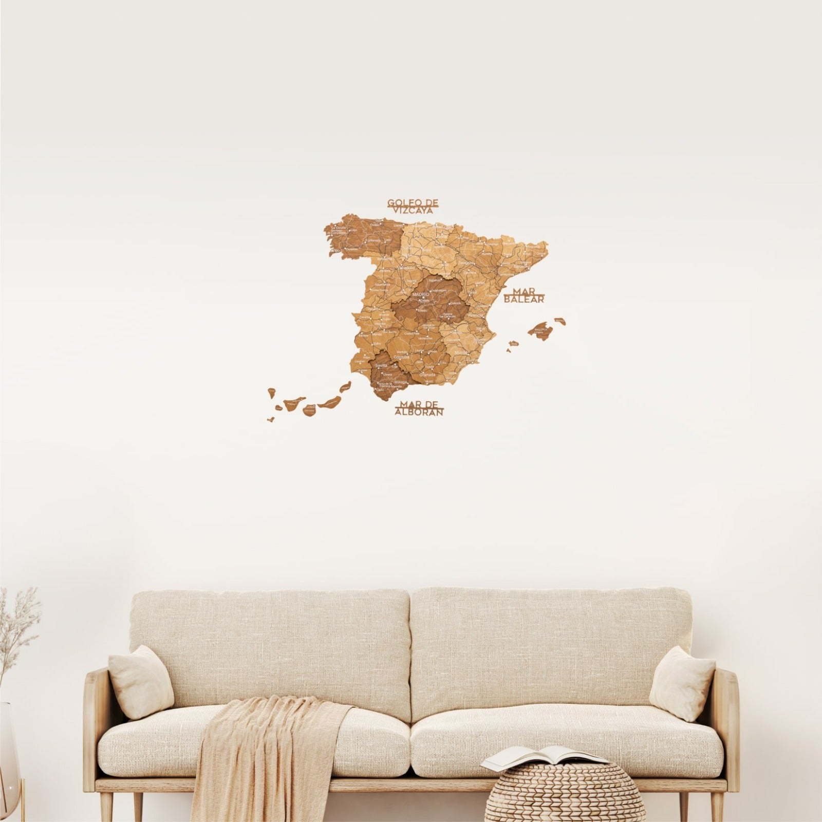 Dieses minimalistische und dennoch detailreiche Wandstück unterstreicht die Geografie Spaniens und verleiht Ihrer Einrichtung einen frischen, organischen Touch. Seine sanften Töne und das klare Design machen es ideal für skandinavische, moderne oder Boho-Interieurs.