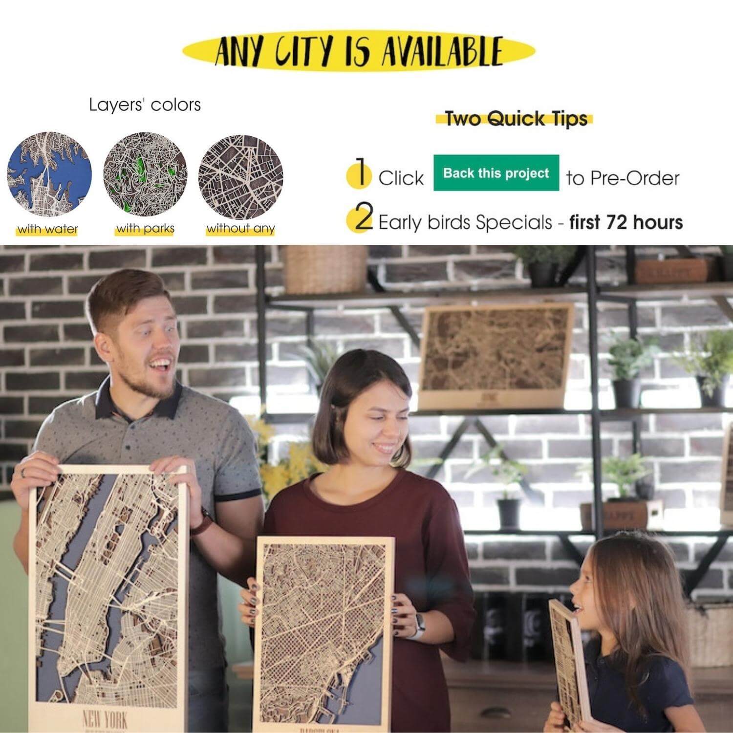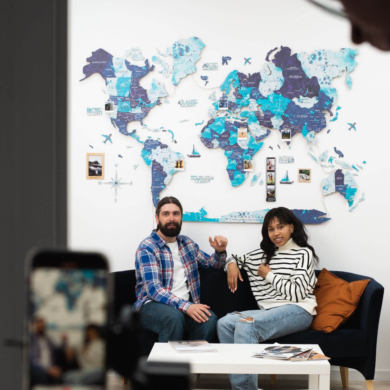 Durante una cena familiar, los padres de Maryna mencionaron a un amigo que vendía artículos grabados en Etsy. La idea cautivó a Igor y Maryna. Decidieron empezar creando artículos para el hogar exquisitos y funcionales y vendiéndolos en Etsy. Así nació Enjoy The Wood en 2014. En 2016, a Igor se le ocurrió la idea de crear un cautivador mapa del mundo de madera para la pared de su oficina.
