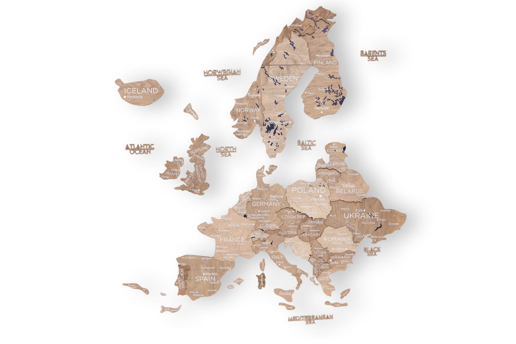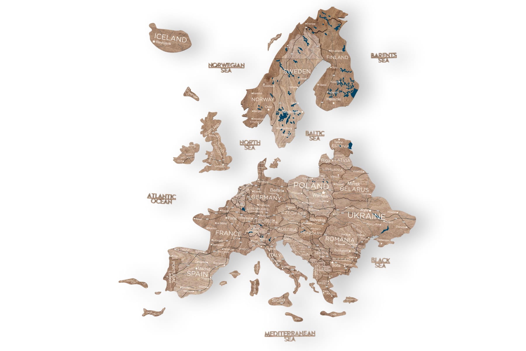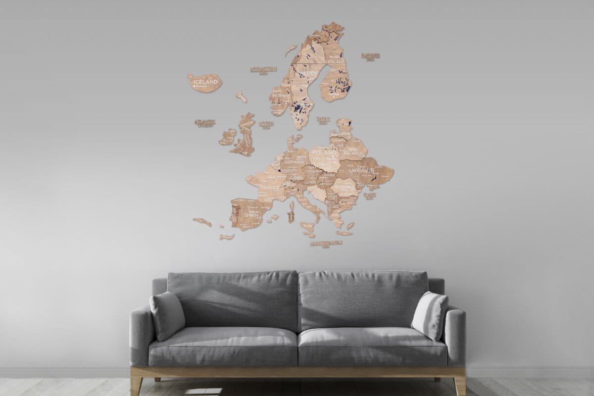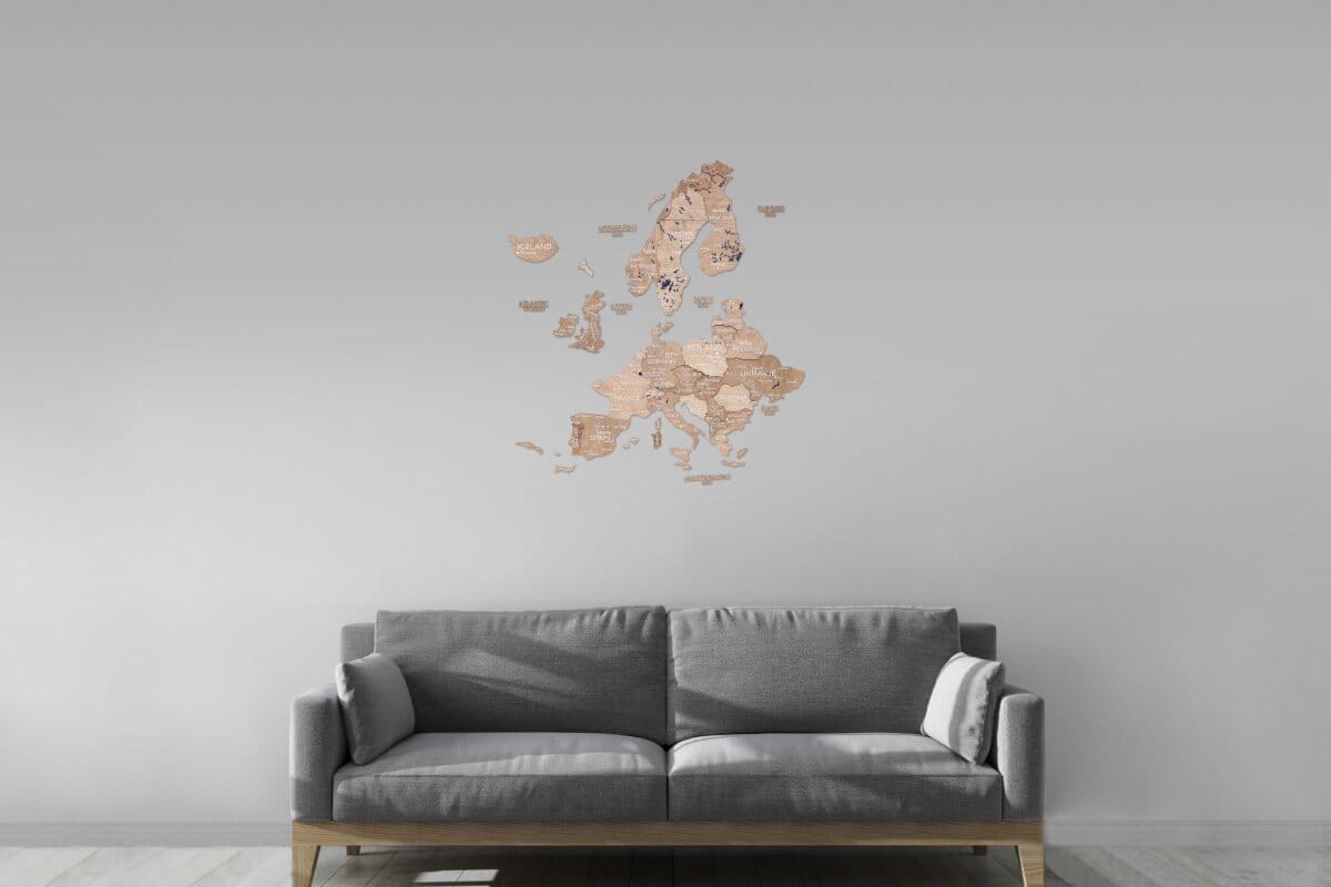 El Decoración de pared con arte 3D El formato añade un impresionante efecto dimensional, haciendo que cada país destaque con la intrincada precisión del corte láser. Es más que una simple decoración: es una invitación a explorar, soñar y recordar tus viajes. Tanto si te apasiona la cultura europea como si simplemente te encanta la decoración única, este mapa ofrece estilo y significado.