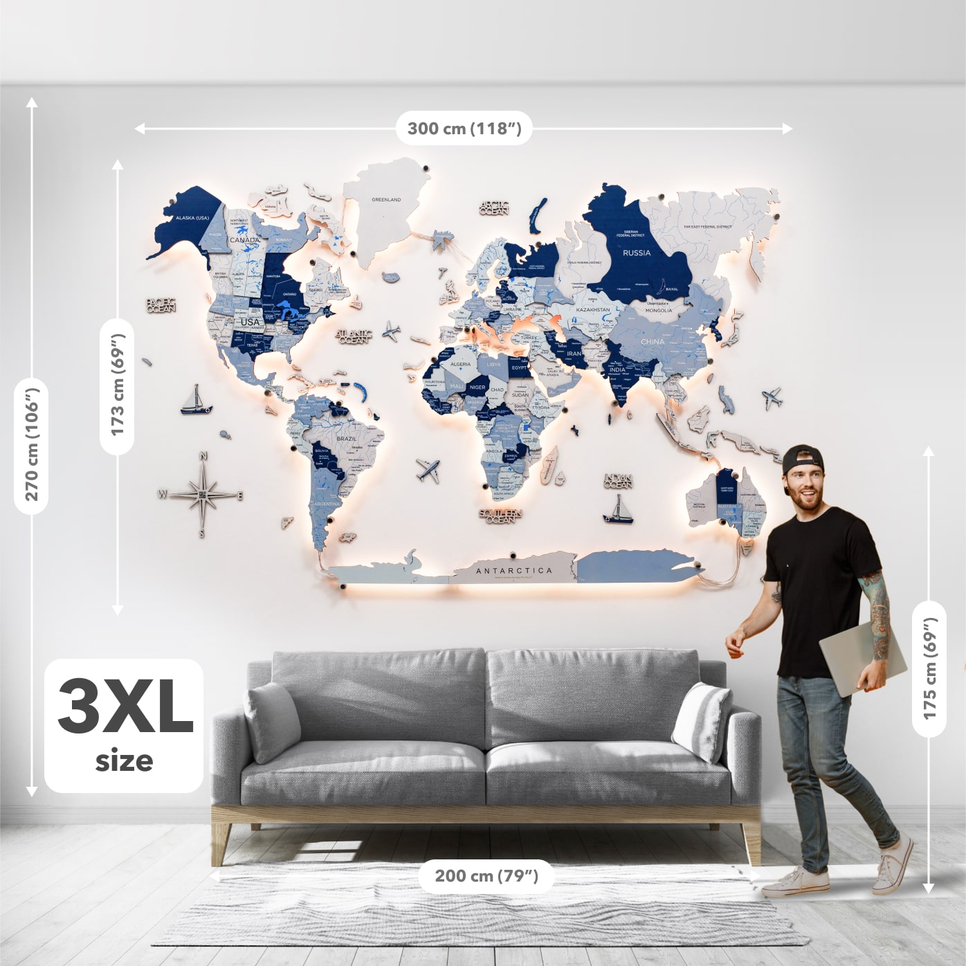 As the first creators of Wooden World Maps, Enjoy The Wood offers you original products backed by a strong patent portfolio, reaffirming our commitment to innovation and protection 🥇. Multicolor 3D LED map is crafted from birch plywood known for its durability and quality that together help the item stand the test of time.