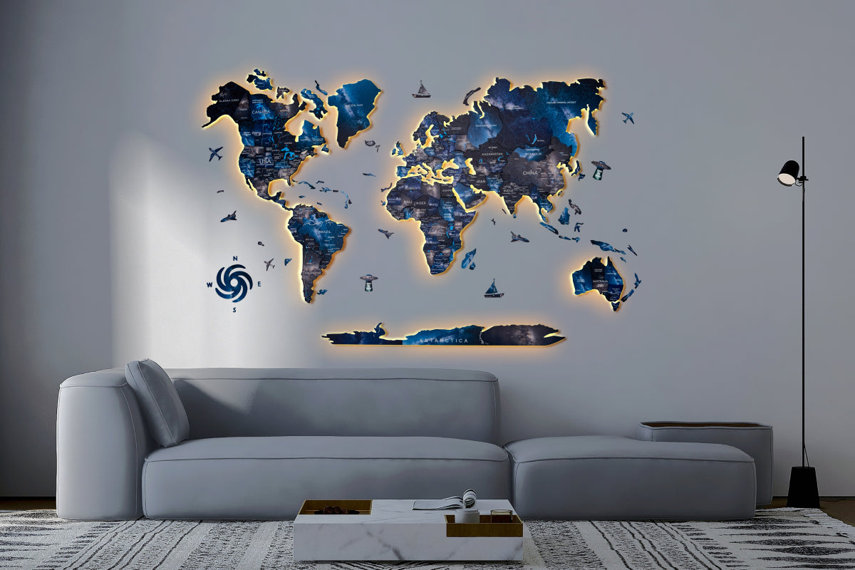 Presentando - una Mapa del mundo de madera 3D con una nueva retroiluminación LED 3.0 Eso te dejará sin aliento.