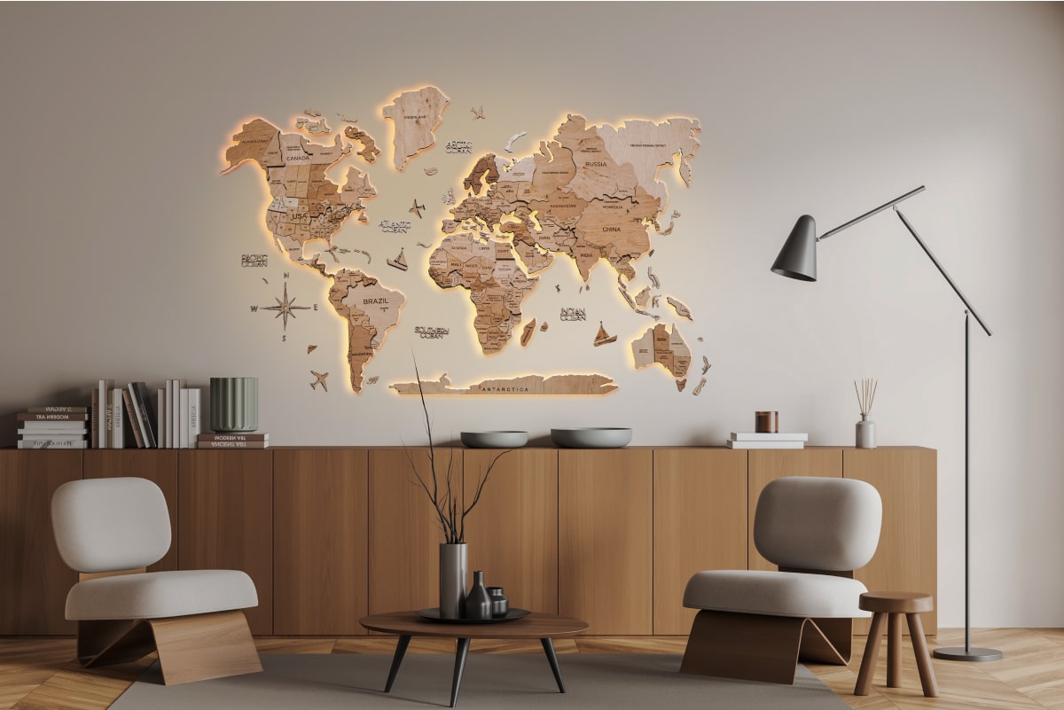 Descubre más diseños premium en Disfruta del bosqueExplora nuestra colección de Mapas del mundo de madera con LED 3D para encontrar versiones iluminadas que aportan un brillo acogedor a tu espacio. No te pierdas nuestra Los más vendidos, donde encontrará mapas de madera mejor valorados y amados por clientes de todo el mundo.