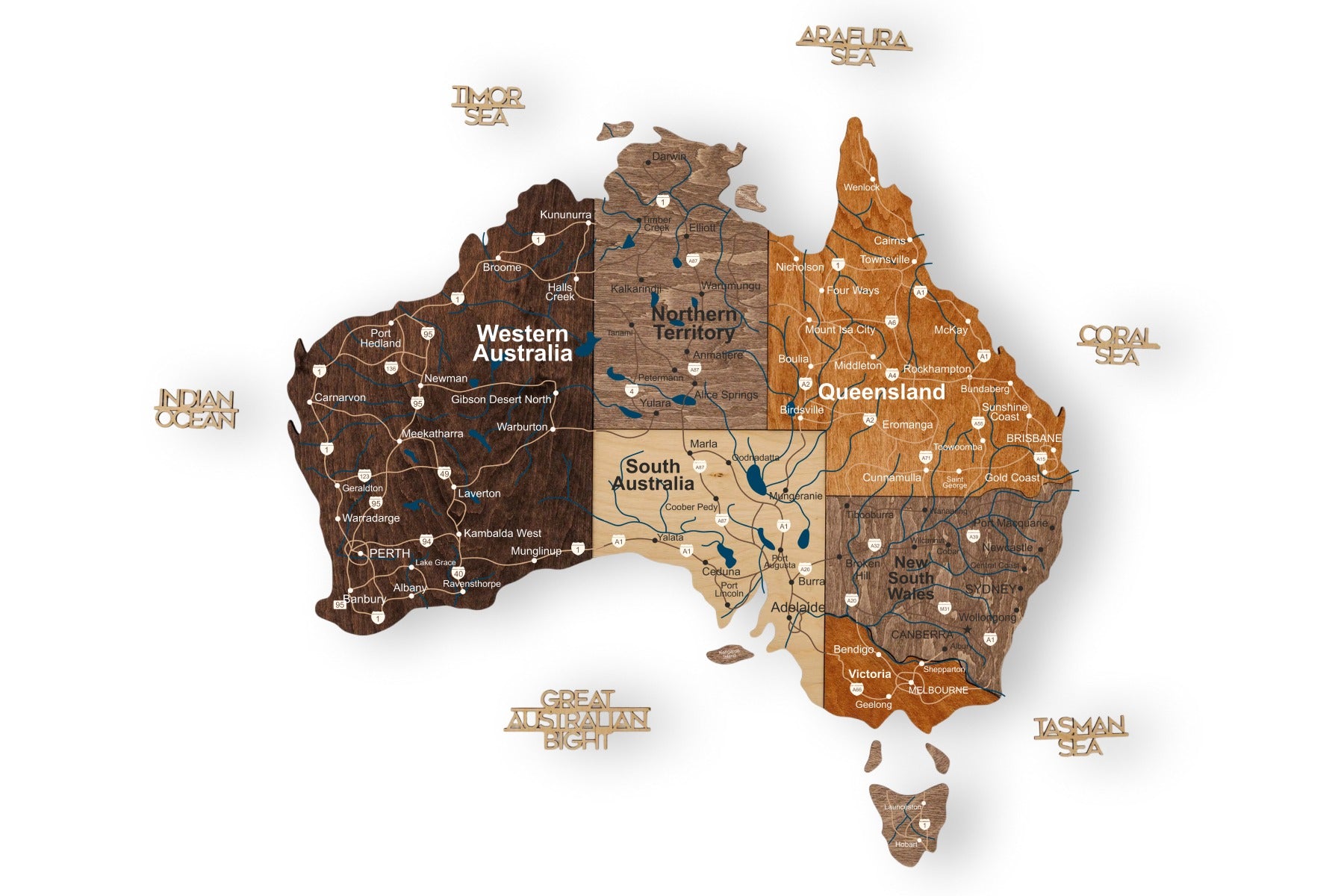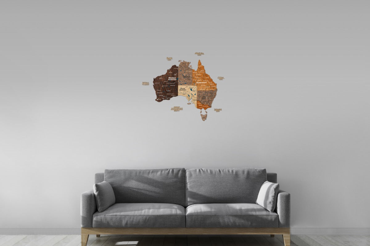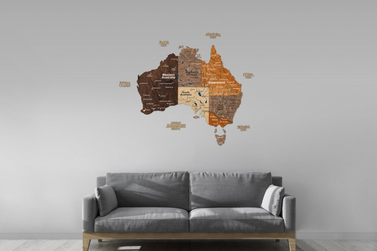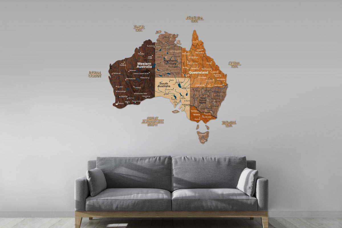 Elaborado con madera natural, cada mapa es una obra maestra única que captura el espíritu de Australia. Descubra nuestros otros diseños regionales en... Todos los mapas de países Colección para comenzar tu galería viajera por el mundo hoy mismo.