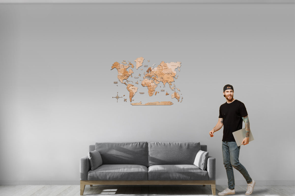 Una habitación no está completa sin accesorios que reflejen tus intereses, pasiones o estilo. Si tu mayor placer es viajar a nuevos continentes, un mapamundi de madera en 3D es imprescindible. En cualquier interior —industrial, moderno, rústico o mediterráneo—, una magnífica ilustración del mundo se convertirá en un complemento elegante y una muestra de tu espíritu viajero.