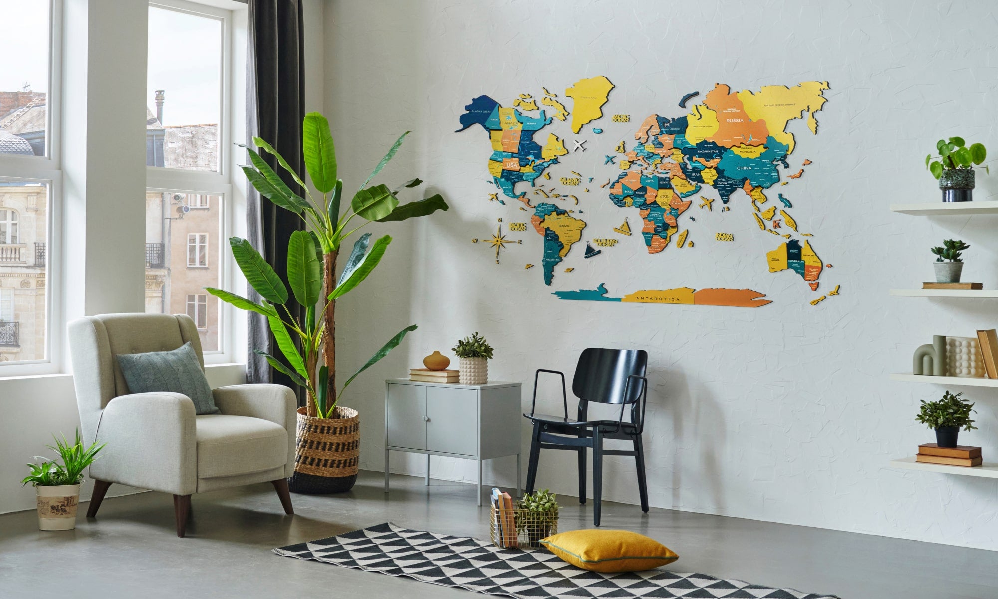 Este vibrante mapamundi de madera muestra con gran detalle una multitud de elementos, desde nombres de países y fronteras hasta capitales, bulliciosos centros urbanos, ríos, lagos y majestuosas cordilleras. Es importante destacar que se han excluido intencionalmente algunas islas y países menores, lo que lo hace inapropiado para fines educativos. Para completar tu colorido arte mural en 3D, no olvides incluir estos elementos. pines de parques nacionales En tu carrito de compras. Montar este mapa es muy fácil. En pocas horas, podrás fijarlo de forma segura a tu pared. Desmontarlo es igual de sencillo y deja marcas mínimas. ¡Disfruta del proceso con tu familia y amigos!