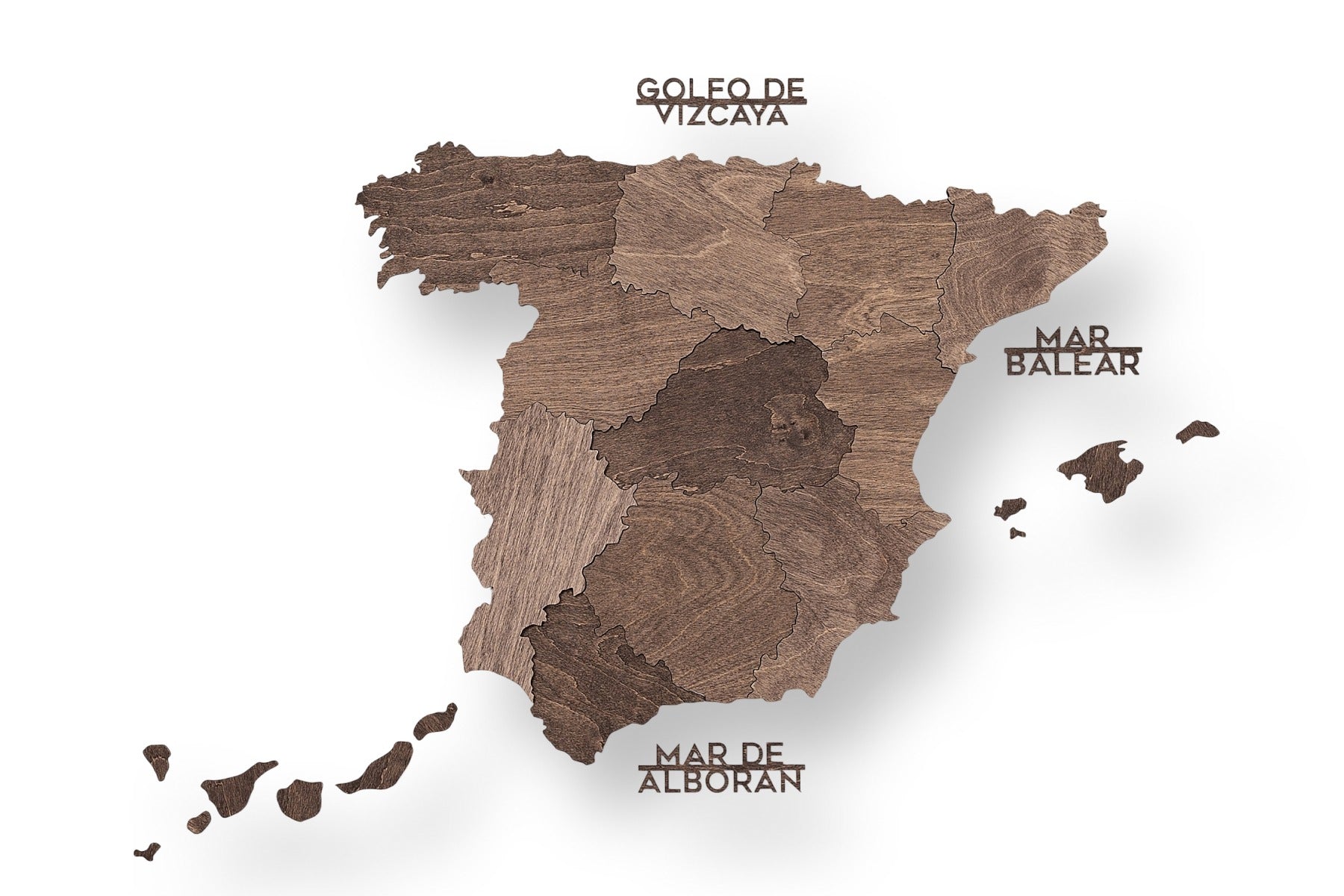 Elegante y atemporal, el Mapa de España en madera de nogal oscuro por Disfruta del bosque Es una sofisticada pieza de diseño para su hogar u oficina. Elaborada con madera de tonos intensos, presenta grabados detallados de ciudades y regiones: una pieza perfecta. mapa del país de España Para los amantes del diseño.