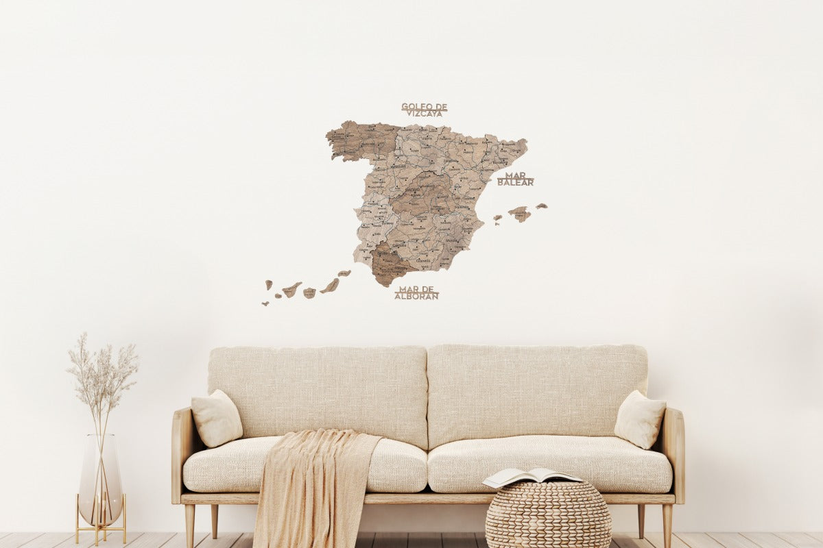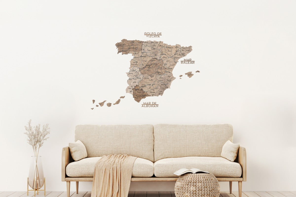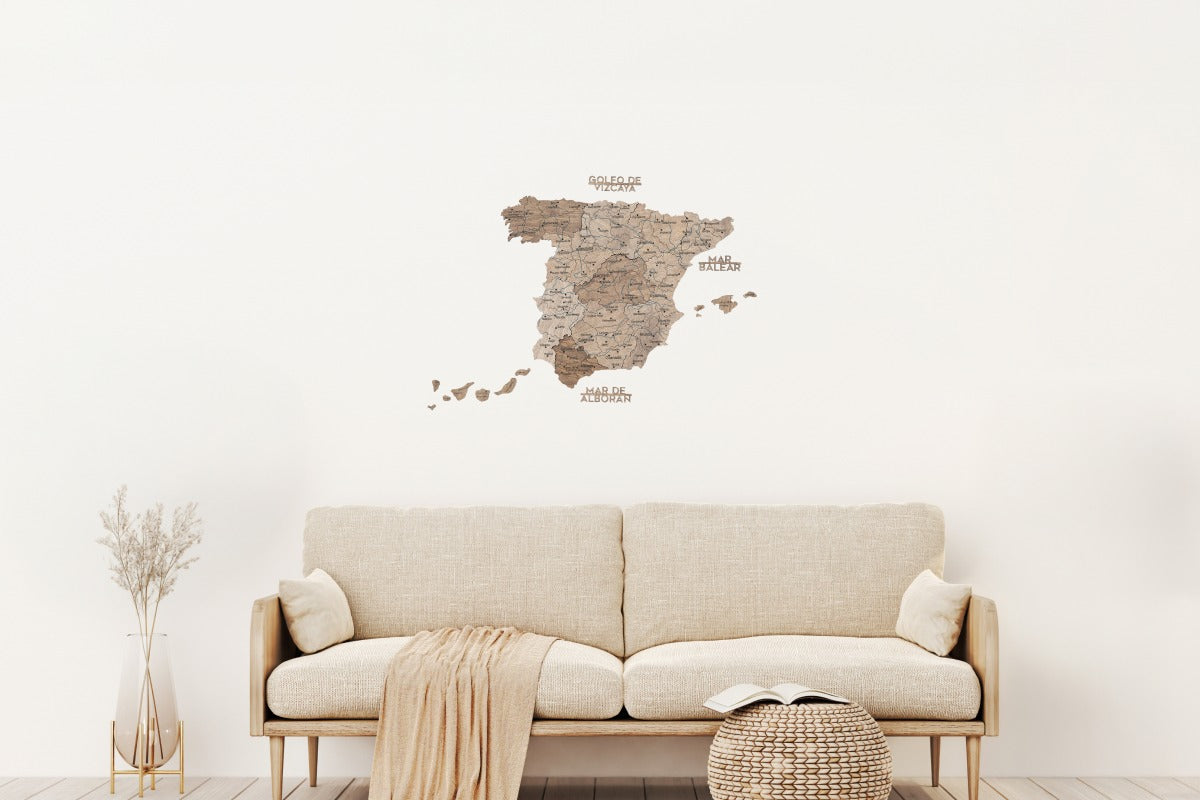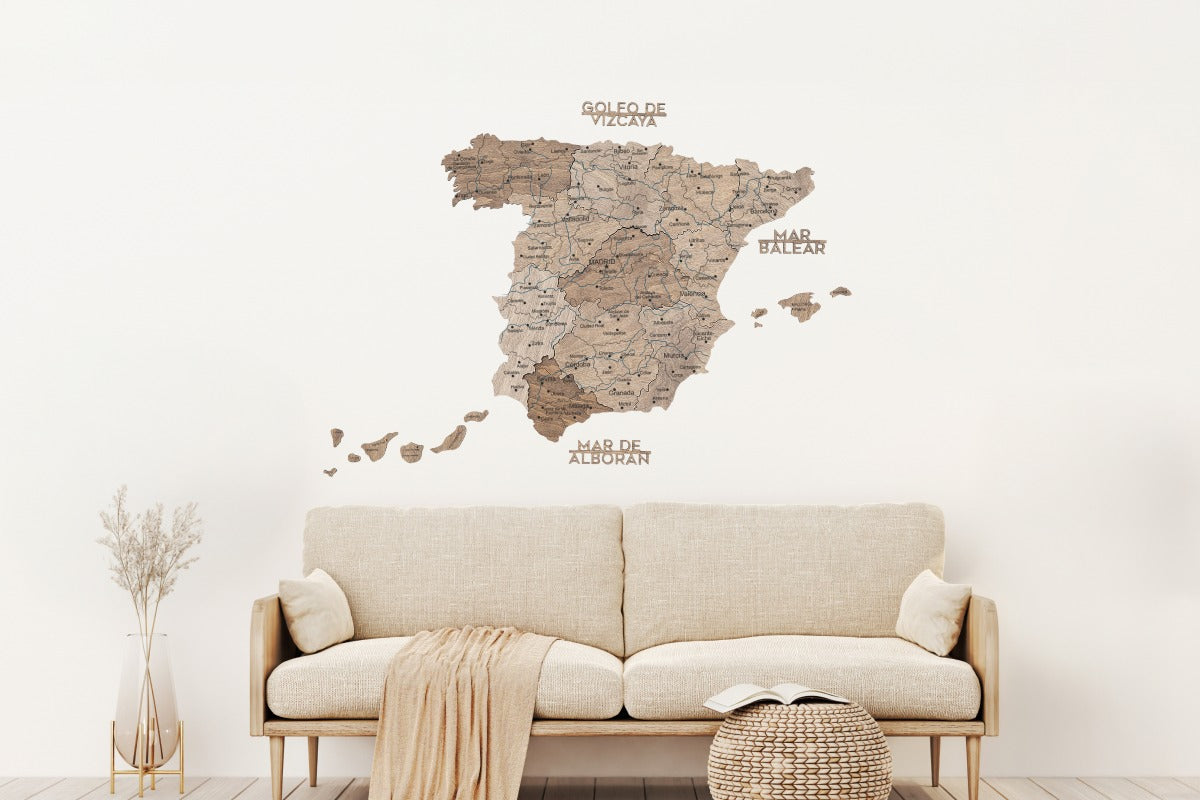 Embrace natural tones and timeless elegance with the Wooden Spain Map – Terra by Enjoy The Wood. This sophisticated wooden wall map reflects the warm spirit of Spain through earthy shades, precise laser-cut detailing, and exceptional handmade craftsmanship. It’s a perfect way to celebrate your travels, highlight favorite cities, and bring the beauty of Spanish landscapes into your home.