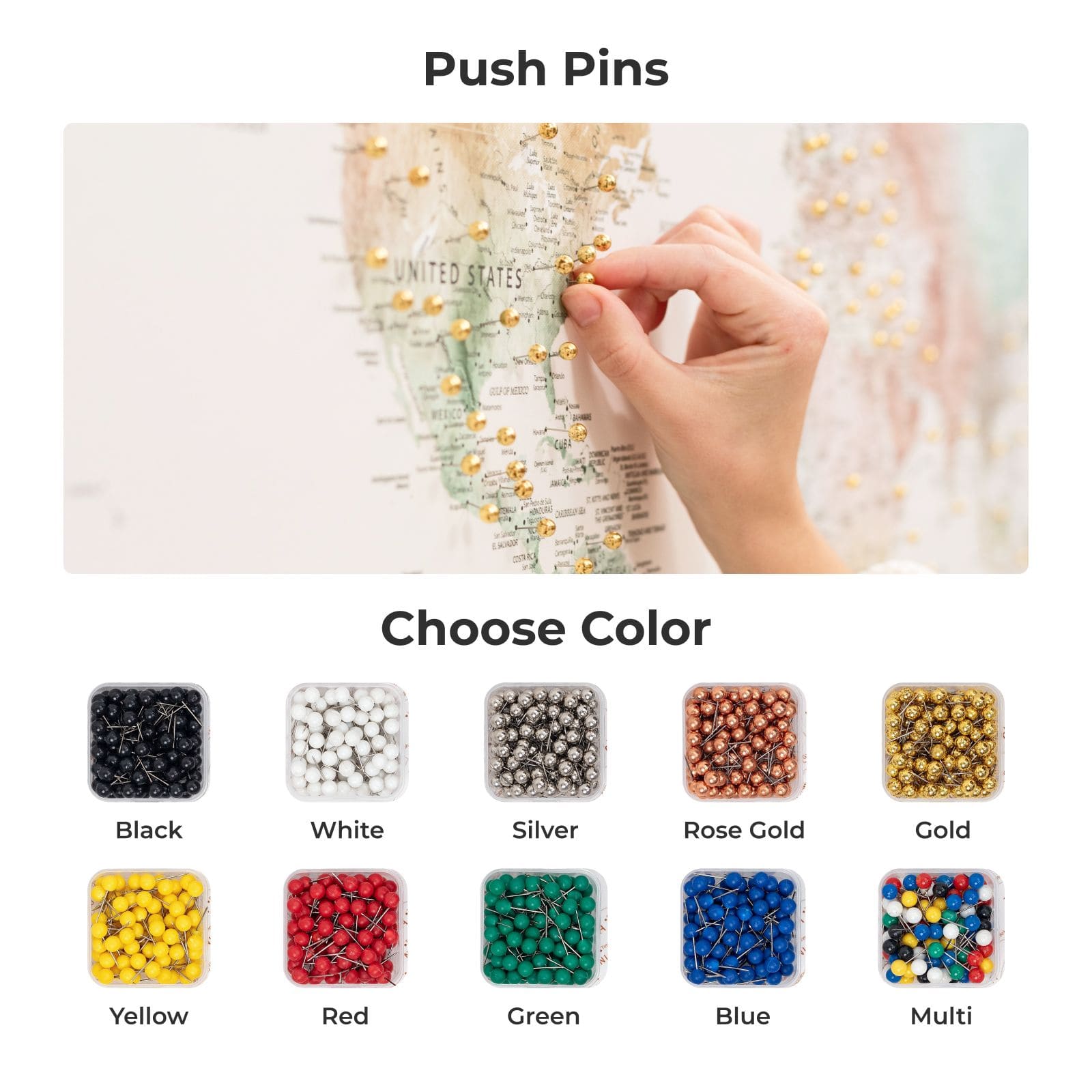 Introducing our canvas push pin travel map: crafted from durable fabric, ideal for pinning your adventures. It features a UV-protective coating and a wooden underframe and is ready to be hung. Available in 2 sizes and many designs, with clear borders and readable text for all 197 countries, making it easy to mark your travels.