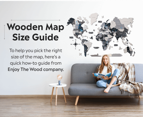 To create an ideal 3D effect, we handcraft a wooden map with a couple of layers. The thickness of every item is 4-8 mm. This is closely linked with the product weight and its service life. We do our best to handcraft the finest quality piece of décor that will stand the test of time and won’t lose its external aesthetics.