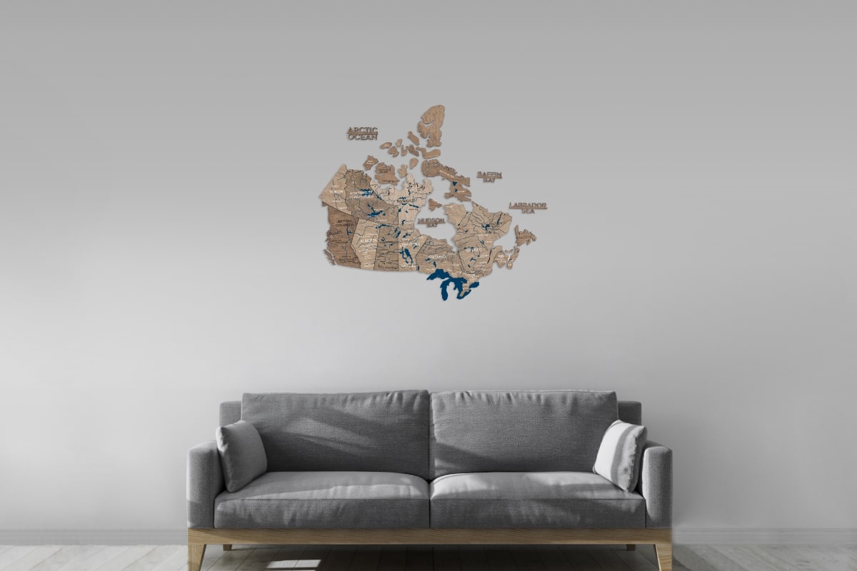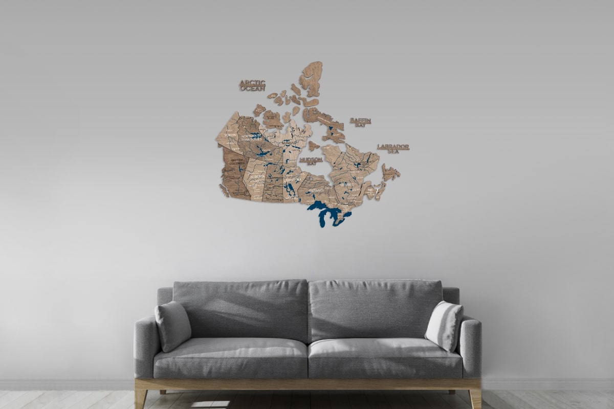 Enhance your interior with the 3D Wooden Map of Canada – Terra, a striking piece that brings both elegance and a sense of adventure to any space. Crafted from premium wood, this map captures every province with detailed precision, making it a perfect decorative centerpiece for your home or office. Enjoy The Wood offers this map as a unique way to celebrate Canada’s beauty while adding a tactile, three-dimensional element to your walls.