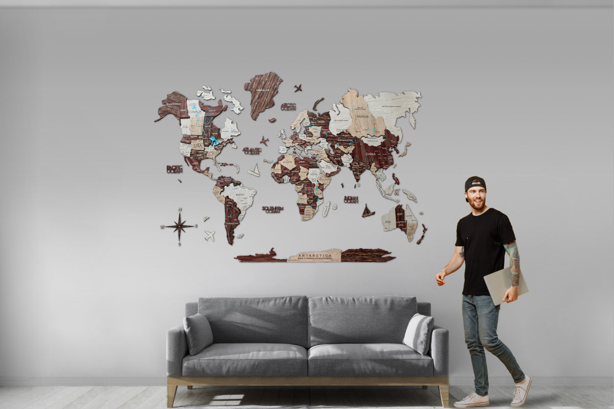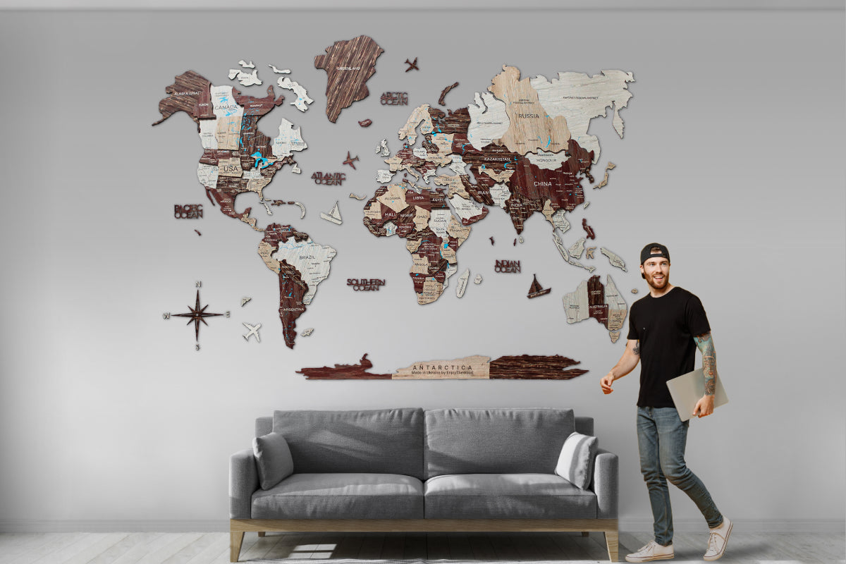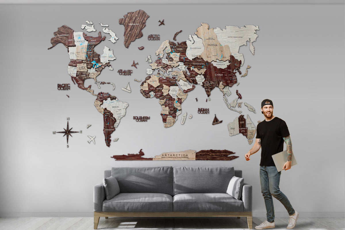 Crafted with certified sustainable birch plywood and fiber wood, our Map is not just decor but a travel planner and memory board. Installation is a breeze, taking just a couple of hours. It's the perfect ready-to-gift addition that lights up your space, available in various sizes.