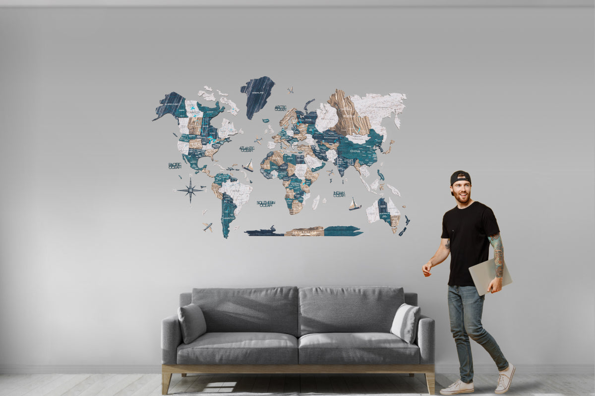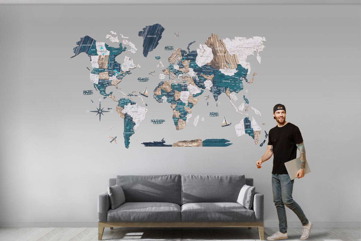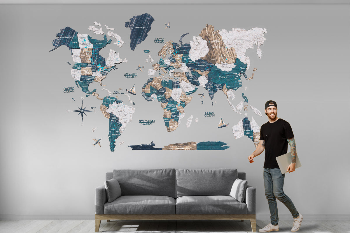 Crafted with certified sustainable birch plywood and fiber wood, our Map is not just decor but a travel planner and memory board. Installation is a breeze, taking just a couple of hours. It's the perfect ready-to-gift addition that lights up your space, available in various sizes.