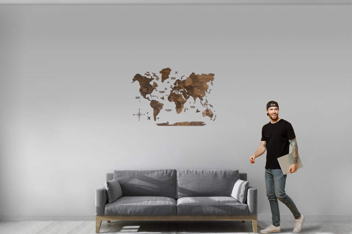 Crafted with certified sustainable birch plywood and fiber wood, our Map is not just decor but a travel planner and memory board. Installation is a breeze, taking just a couple of hours. It's the perfect ready-to-gift addition that lights up your space, available in various sizes.