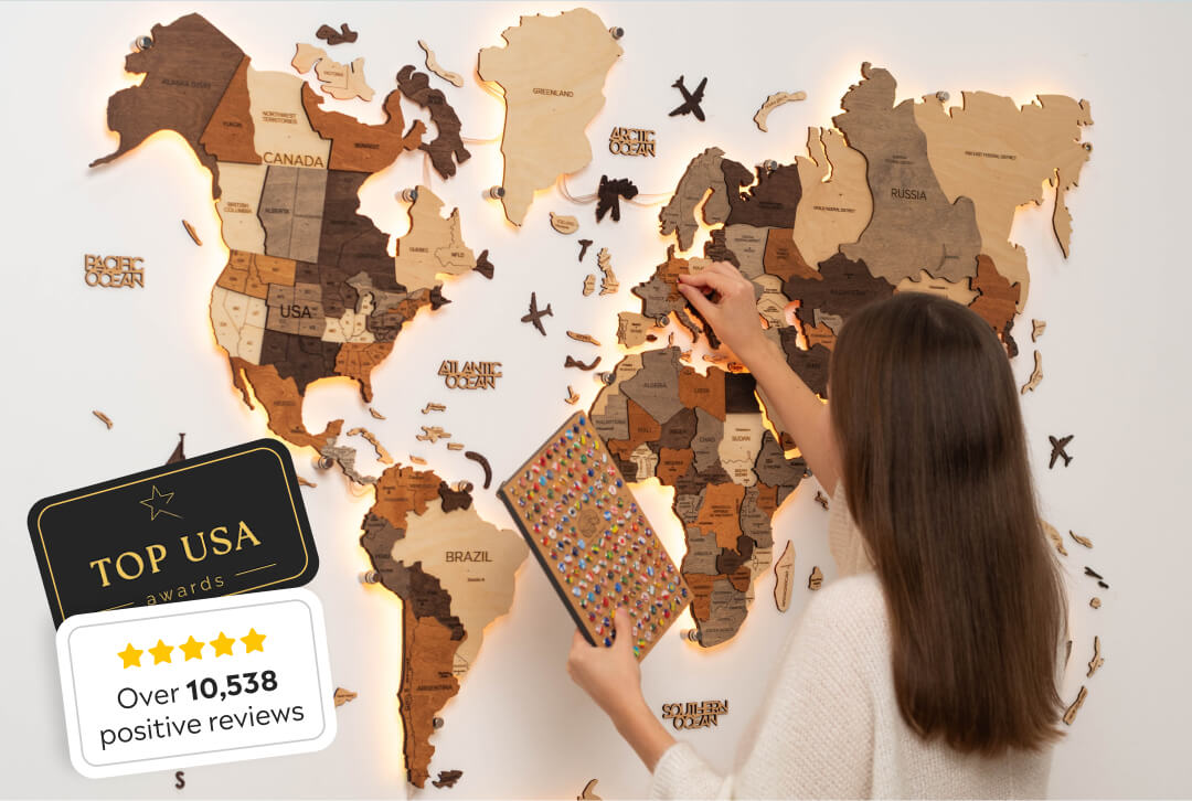 Wooden World Map LED 3.0 is not just a map, it is a breathtaking combination of aesthetics and innovation!