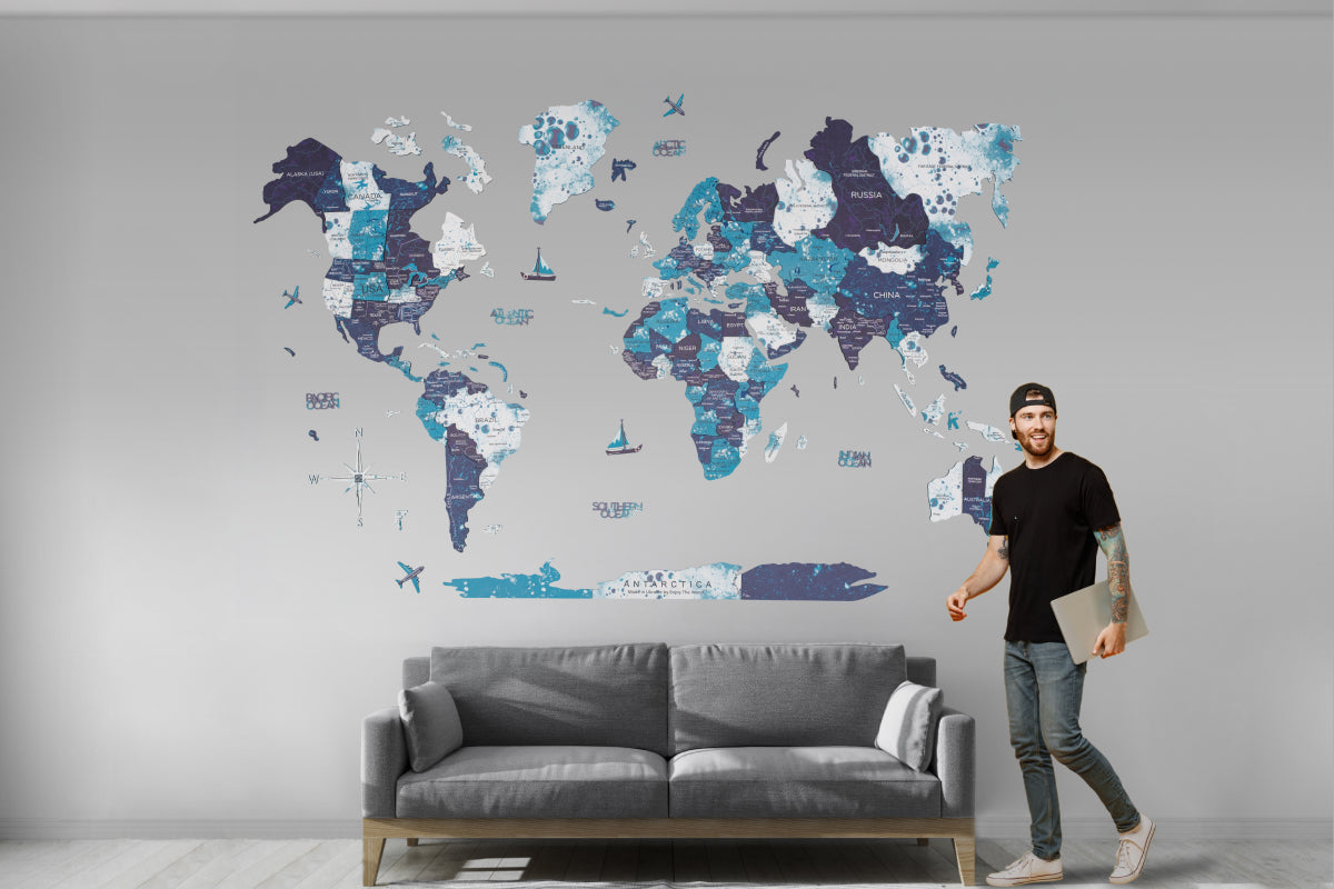 Crafted with certified sustainable birch plywood and fiber wood, our Map is not just decor but a travel planner and memory board. Installation is a breeze, taking just a couple of hours. It's the perfect ready-to-gift addition that lights up your space, available in various sizes.