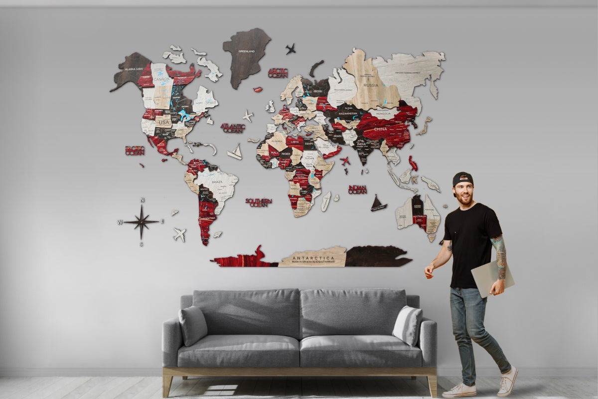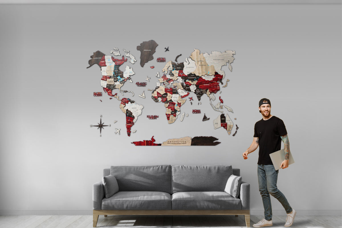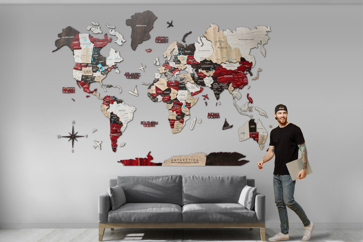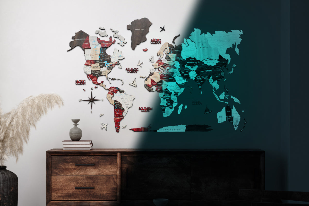 As the first creators of Wooden World Maps, Enjoy The Wood offers you original products backed by a strong patent portfolio, reaffirming our commitment to innovation and protection 🥇. Durable and sustainable, the luminous maps are made of fiberwood. The décor is environmentally-friendly and will serve for years to come. At the same time, the map isn’t heavy, and its thickness is 6 - 12 mm only. Feel free to order the 3D maps with geographical names provided in any preferred language.
