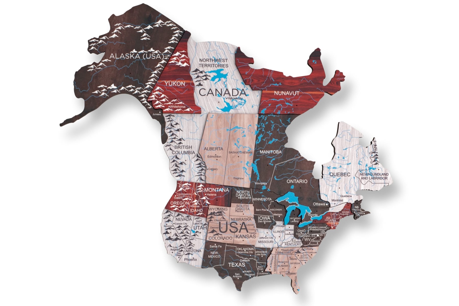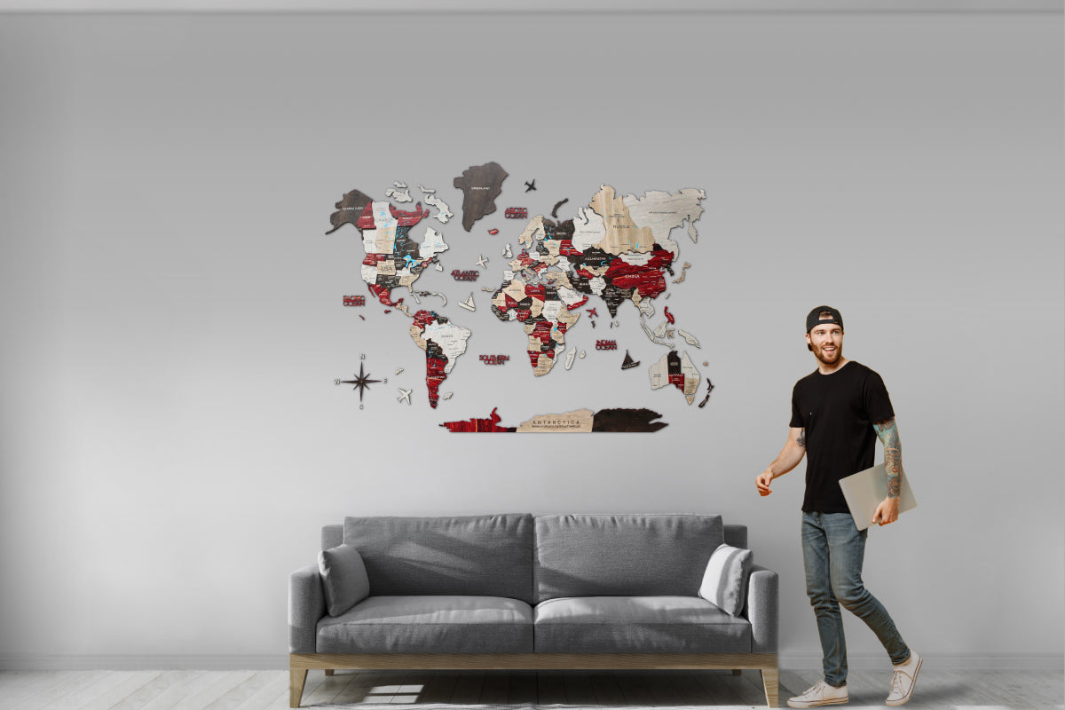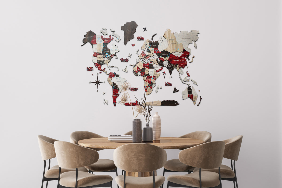 As the first creators of Wooden World Maps, Enjoy The Wood offers you original products backed by a strong patent portfolio, reaffirming our commitment to innovation and protection 🥇. Durable and sustainable, the luminous maps are made of fiberwood. The décor is environmentally-friendly and will serve for years to come. At the same time, the map isn’t heavy, and its thickness is 6 - 12 mm only. Feel free to order the 3D maps with geographical names provided in any preferred language.