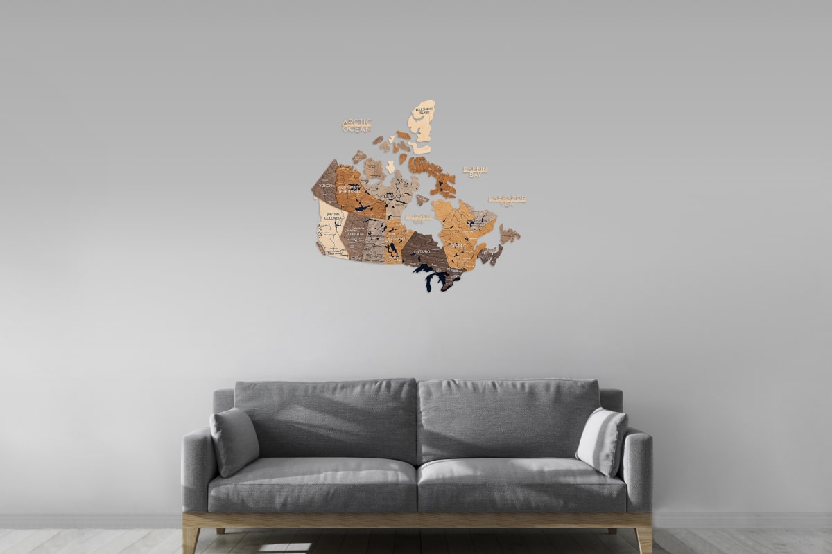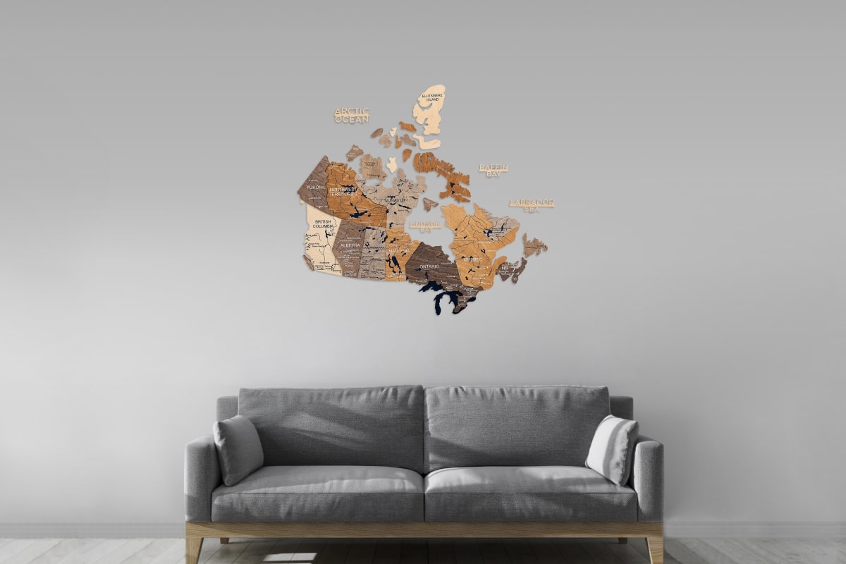 This interactive map of Canada is designed not just for decoration but also for engagement. Each province is clearly defined with contrasting colors, allowing you to easily distinguish the Canada map of provinces. The raised wooden elements add depth and dimension, creating a three-dimensional visual experience that brings Canada’s geography to life on your wall.
