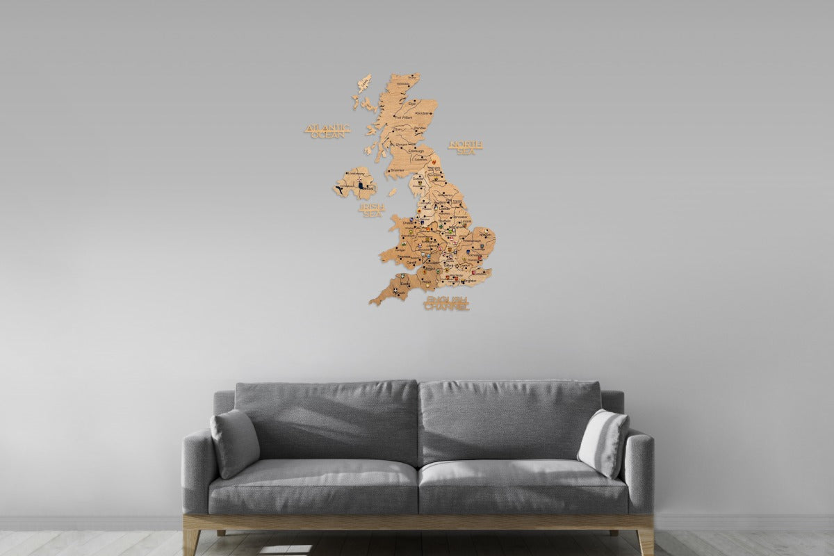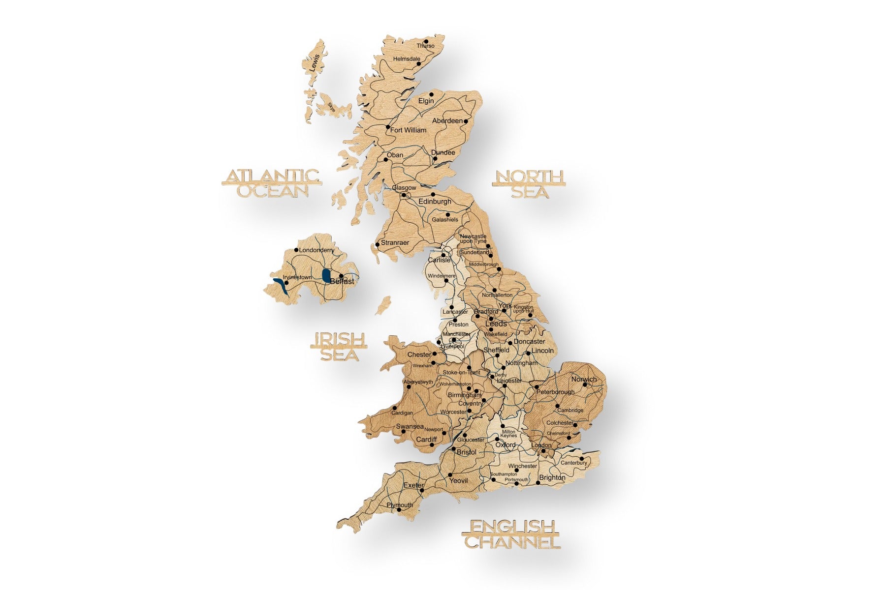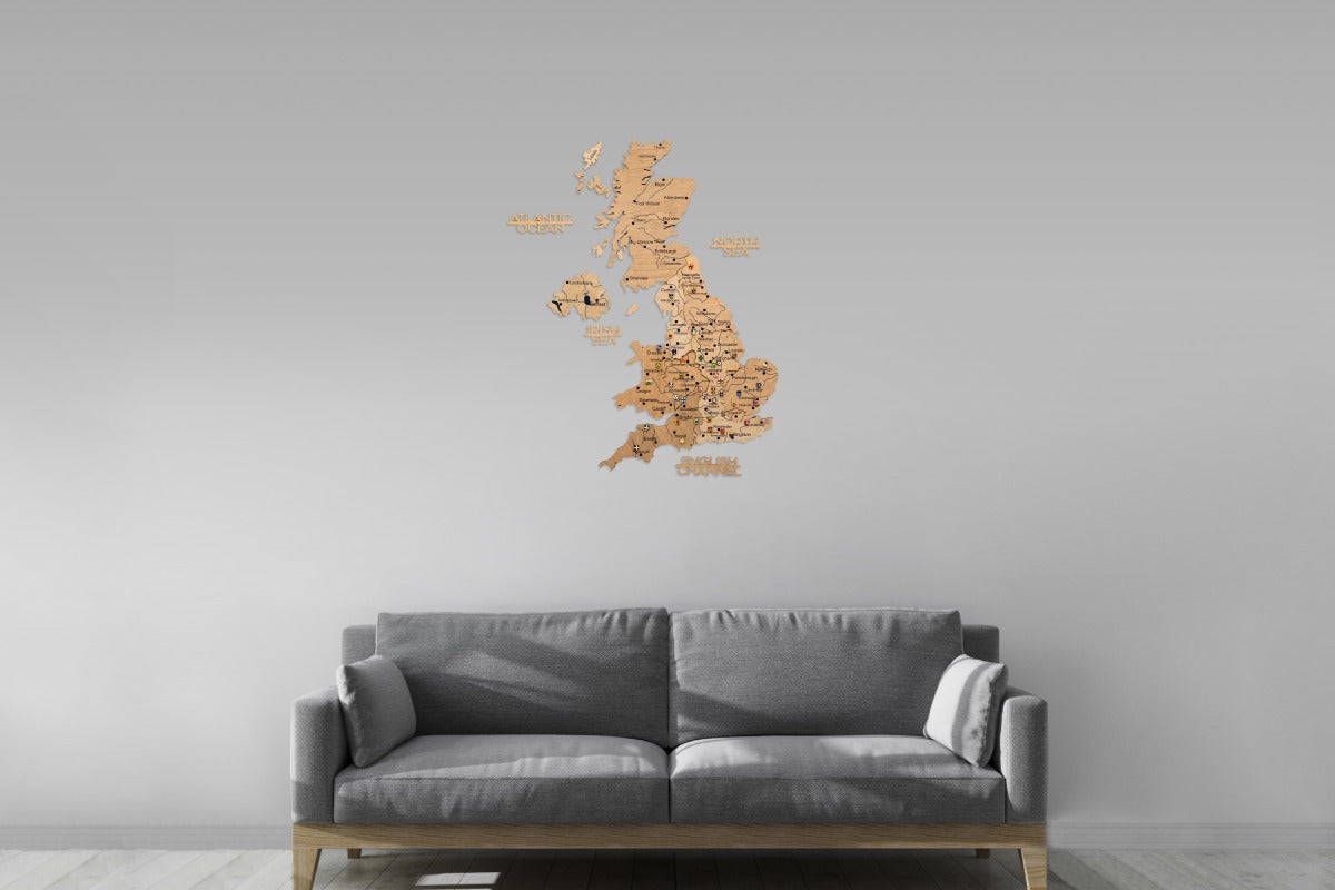 Presenting the 3D Wooden Map of the United Kingdom - Gold edition—a truly premium piece that transforms a geographical representation into a statement of luxury and achievement. This multi-layered artwork captures the entirety of the British Isles with unparalleled brilliance, making it the ultimate gift for a business partner, a celebratory event, or a stunning addition to your executive space. Discover our entire range of geographical wall art and unique décor by visiting Enjoy The Wood.