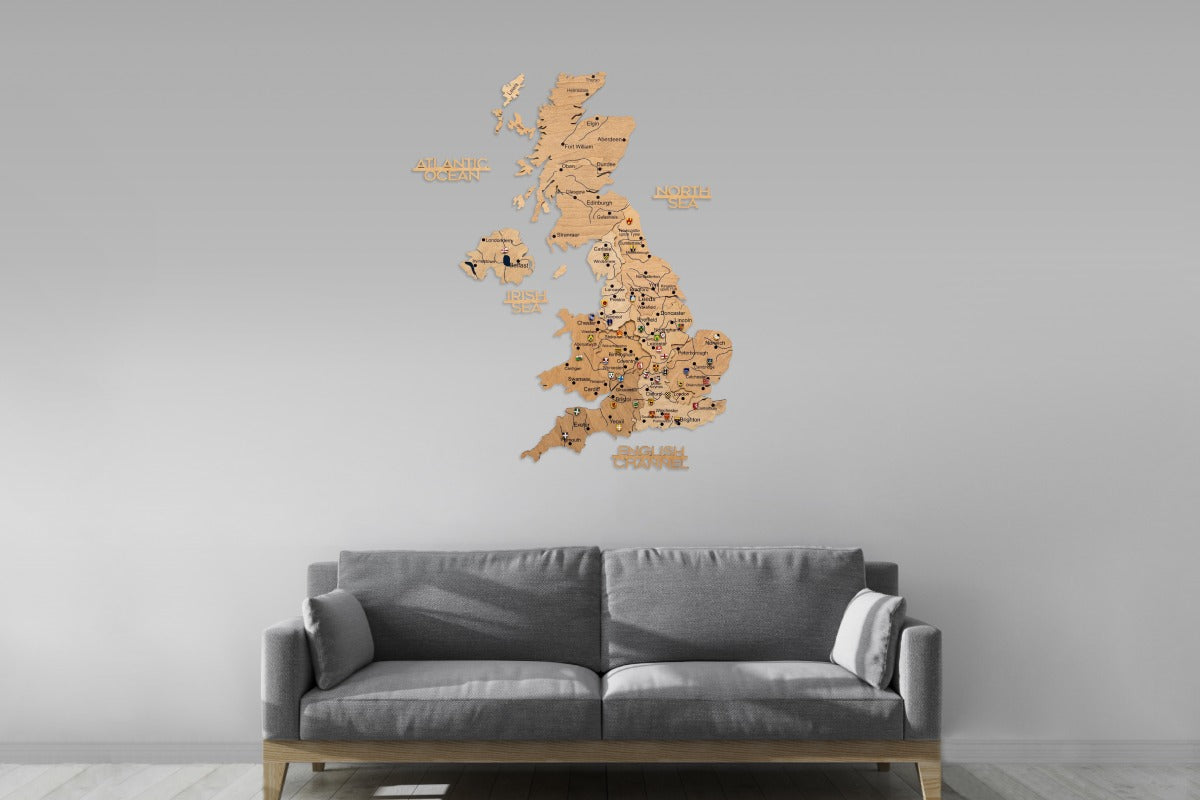 To make the map a personal celebration of journeys taken, special map pins can be purchased separately to mark all the places you have visited or plan to explore within the UK.