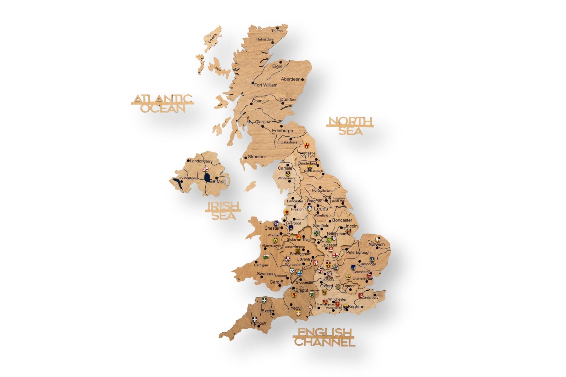 Discover vibrant craftsmanship with the Wooden United Kingdom Map – Gold by Enjoy The Wood. This detailed wooden wall map captures the spirit of the United Kingdom through rich colors, precise laser cutting, and exceptional handmade quality. Every piece highlights your favorite cities and travel memories, turning your wall into a story of adventure and inspiration.