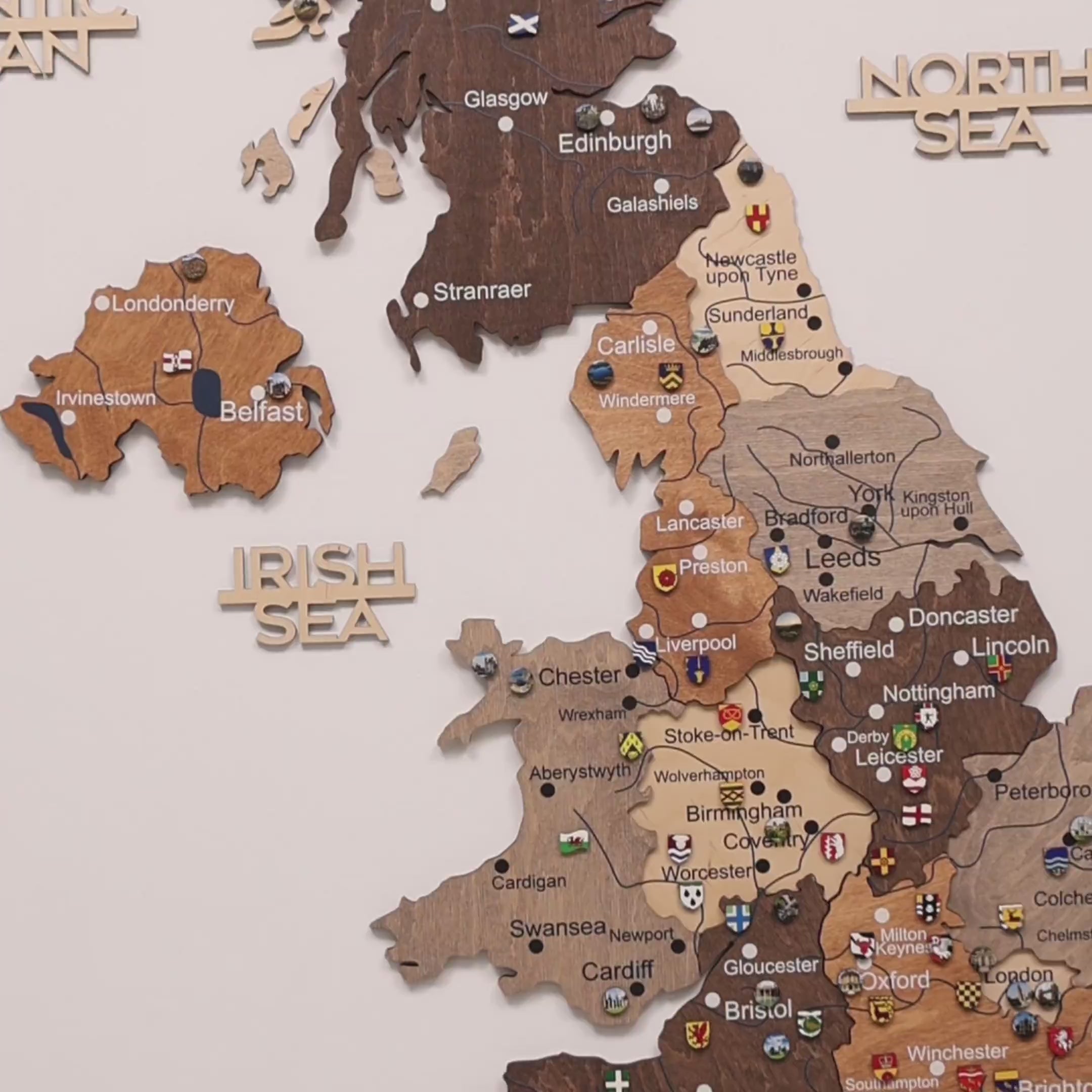 To turn the map into a personalized travel diary, special map pins can be purchased separately to mark all the places you have visited or plan to explore within the UK.
