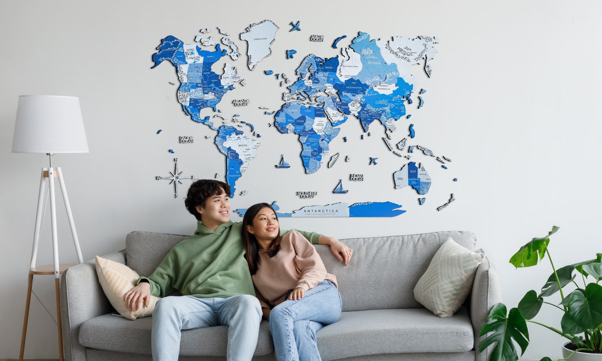 As the first creators of Wooden World Maps, Enjoy The Wood offers you original products backed by a strong patent portfolio, reaffirming our commitment to innovation and protection 🥇. Our colorful art large world map from the Azure collection is handcrafted from top-quality fiberwood with all the countries and continents clearly printed. Feeling stressed? Mount a map to create a small haven of relaxation right in the living room! All materials used in the process of manufacture are earth-friendly, i.e., safe for you and the environment in general.