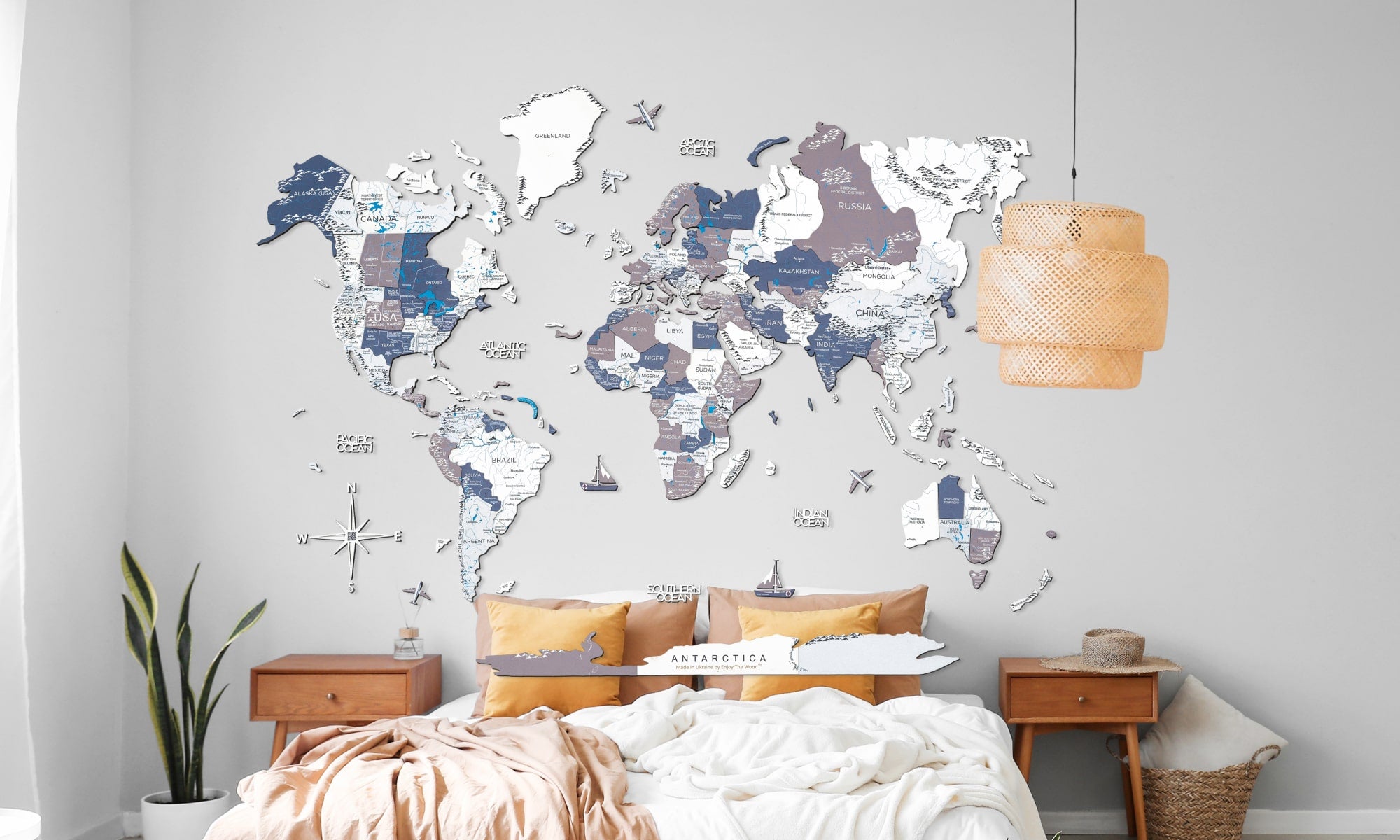 Get a wow focal point with a wooden world map in colors for a bedroom, living room, study room, or hall. Add some cheerful colors to make your office space more exciting!