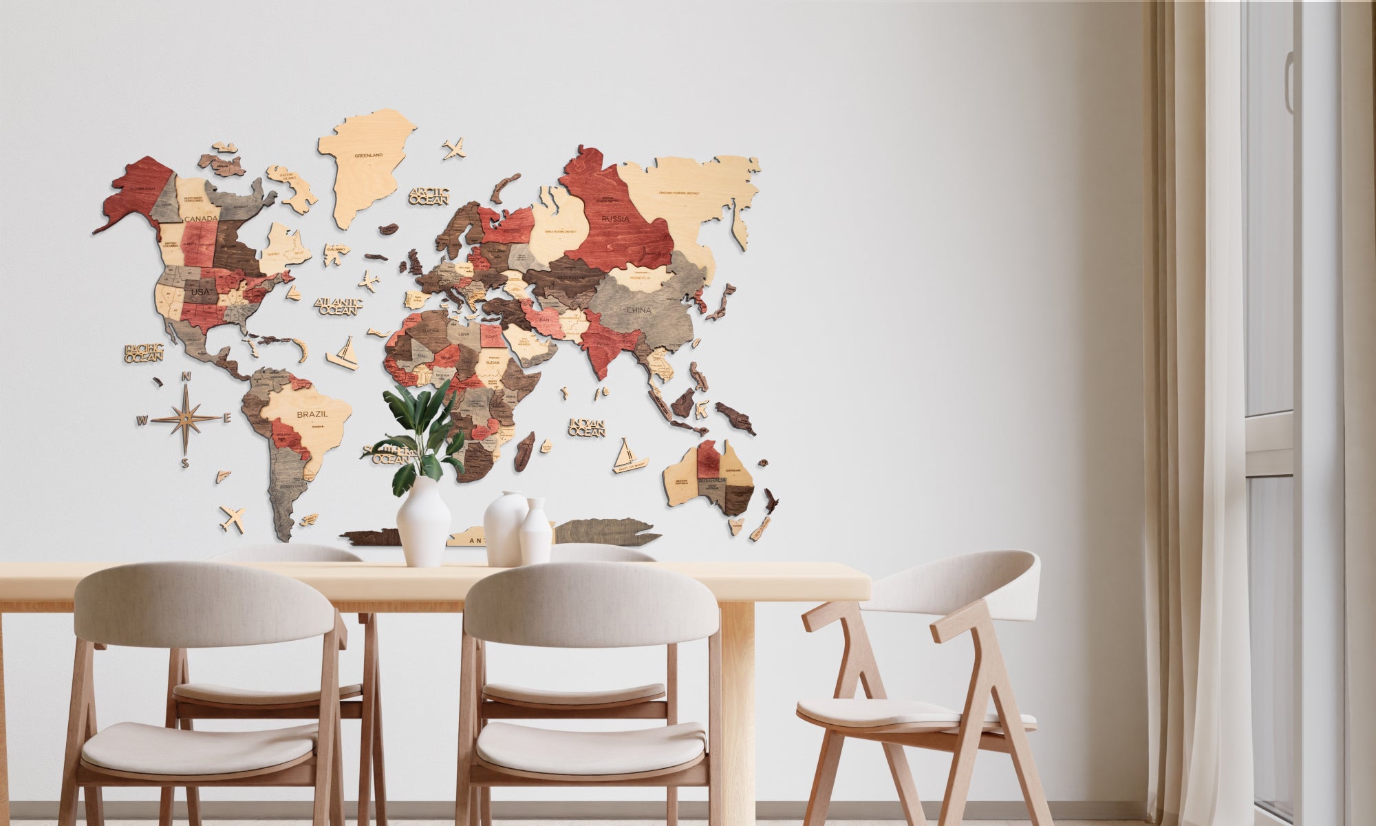 There is a die-hard cliché that wood is beyond competition and offers a timeless look. With our handcrafted wall maps, we could go on with more advantages. Our woodwork combines quality, and creative craftsmanship with time-tested wood types. Made of birch plywood, the wooden map is resistant to wear and tear. Besides, the elegant map design successfully transforms the mood of a room or entire place. This provides incredible value for your money.
