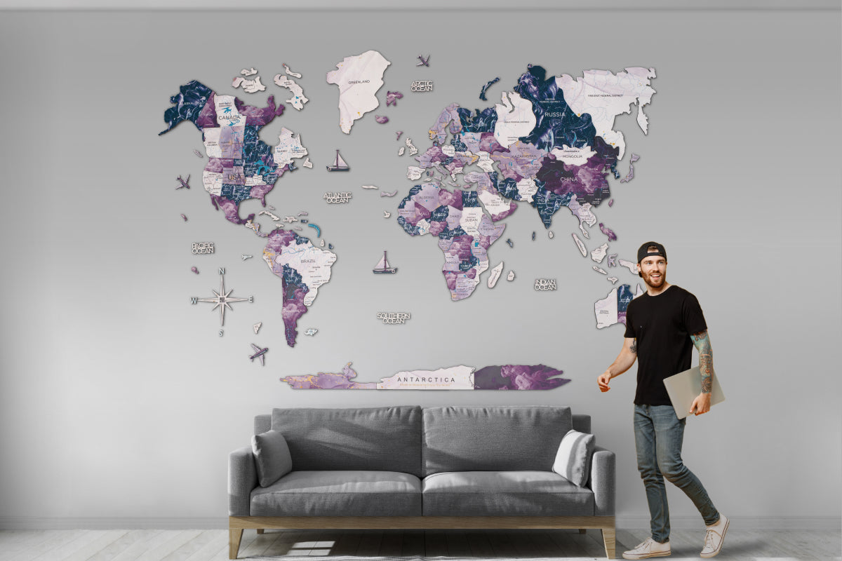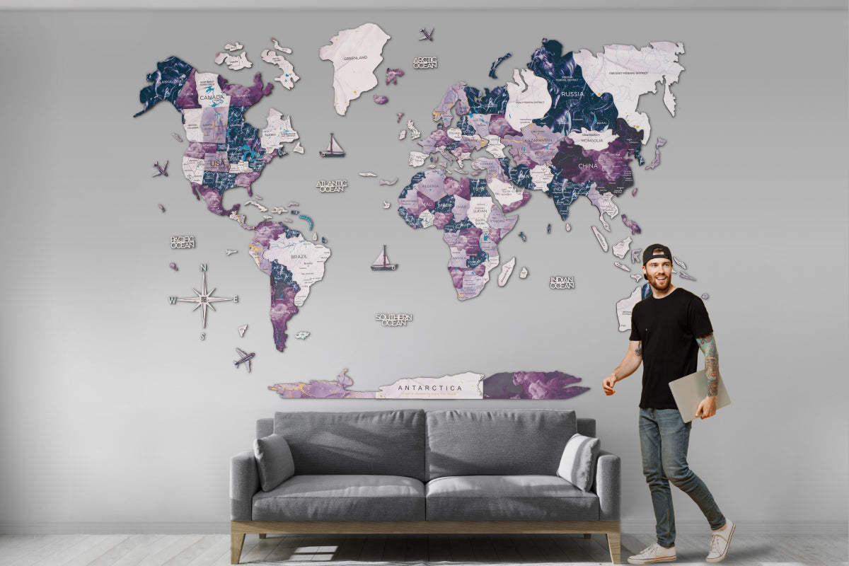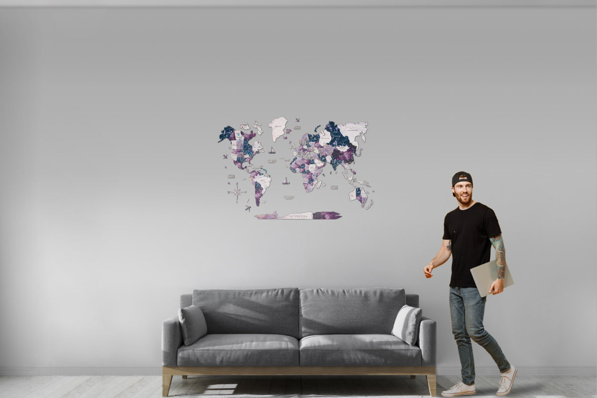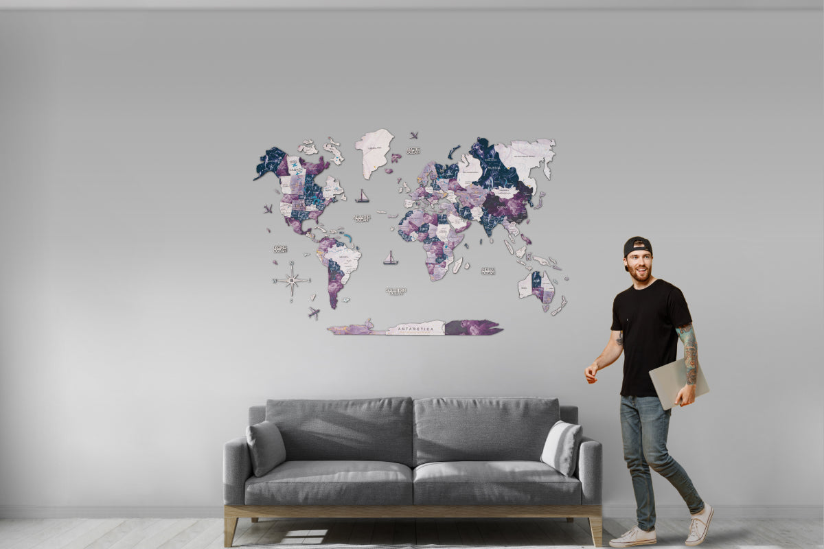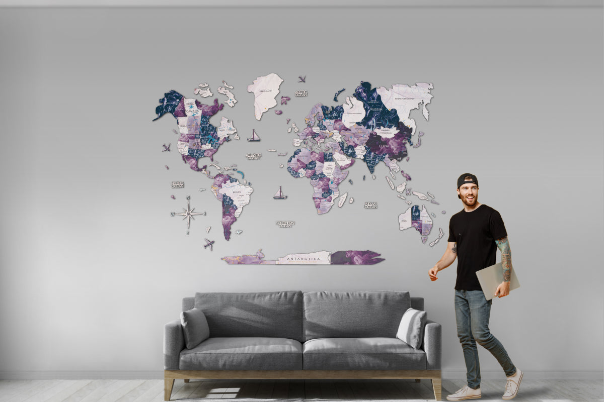 For travel enthusiasts, wanderers, and dreamers, Enjoy The Wood's purple world map Milky Way is more than just home decor; it symbolizes your passion for exploration. Let it grace your walls and transport you to distant lands with every glance.