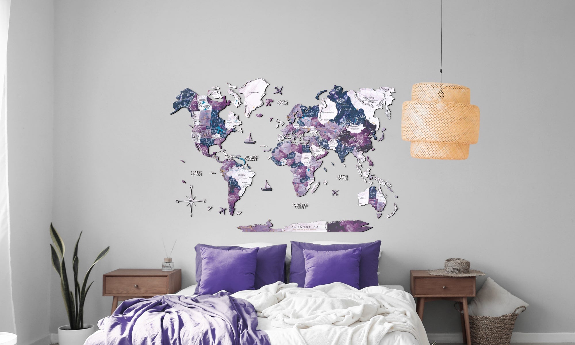For travel enthusiasts, wanderers, and dreamers, Enjoy The Wood's purple world map Milky Way is more than just home decor; it symbolizes your passion for exploration. Let it grace your walls and transport you to distant lands with every glance.