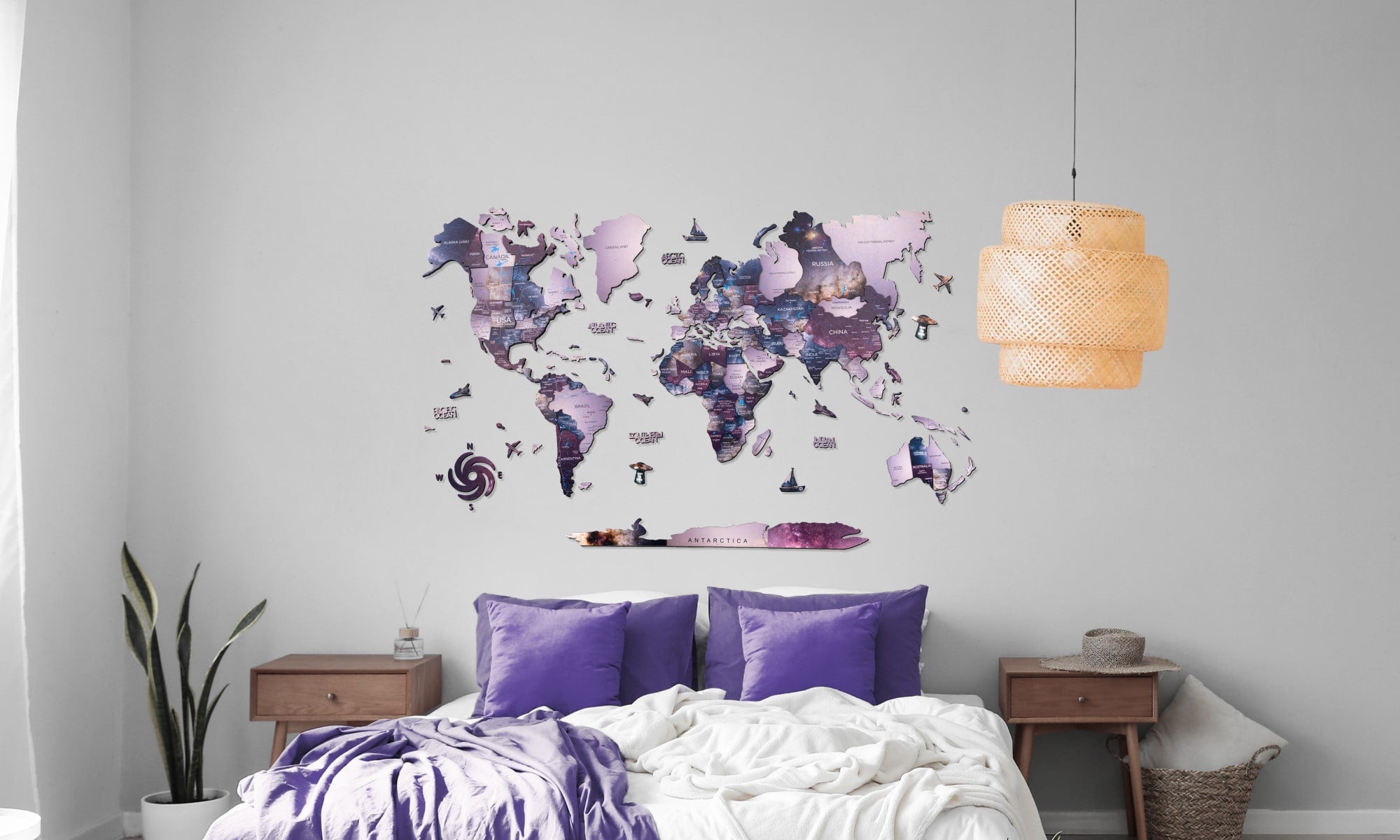 There are loads of ways to have the world settled on the walls of your room. Spruce up your place with a 3D wooden world map. The accent wall will 100% look like a page from the good old atlas!