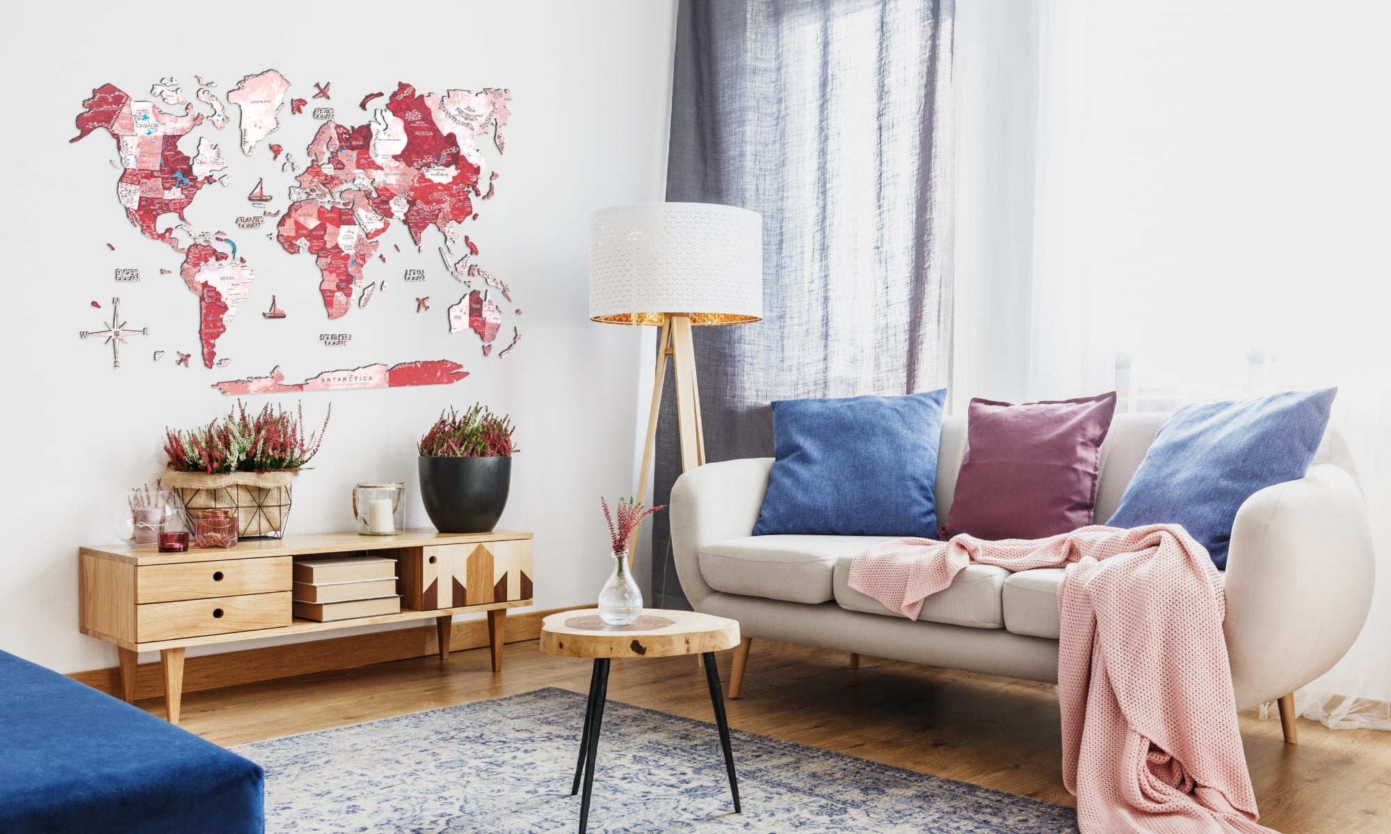Ignite the passion for adventure with Enjoy The Wood bright-colored world map in Volcano color, featuring intense red-hot shadows. This fiery palette makes a dramatic statement in your home office or study. The map's dynamic appearance evokes the raw power and energy of volcanic landscapes, inspiring you to embark on journeys of discovery.