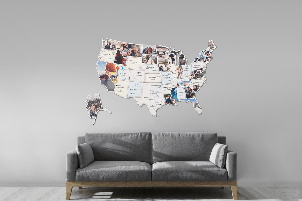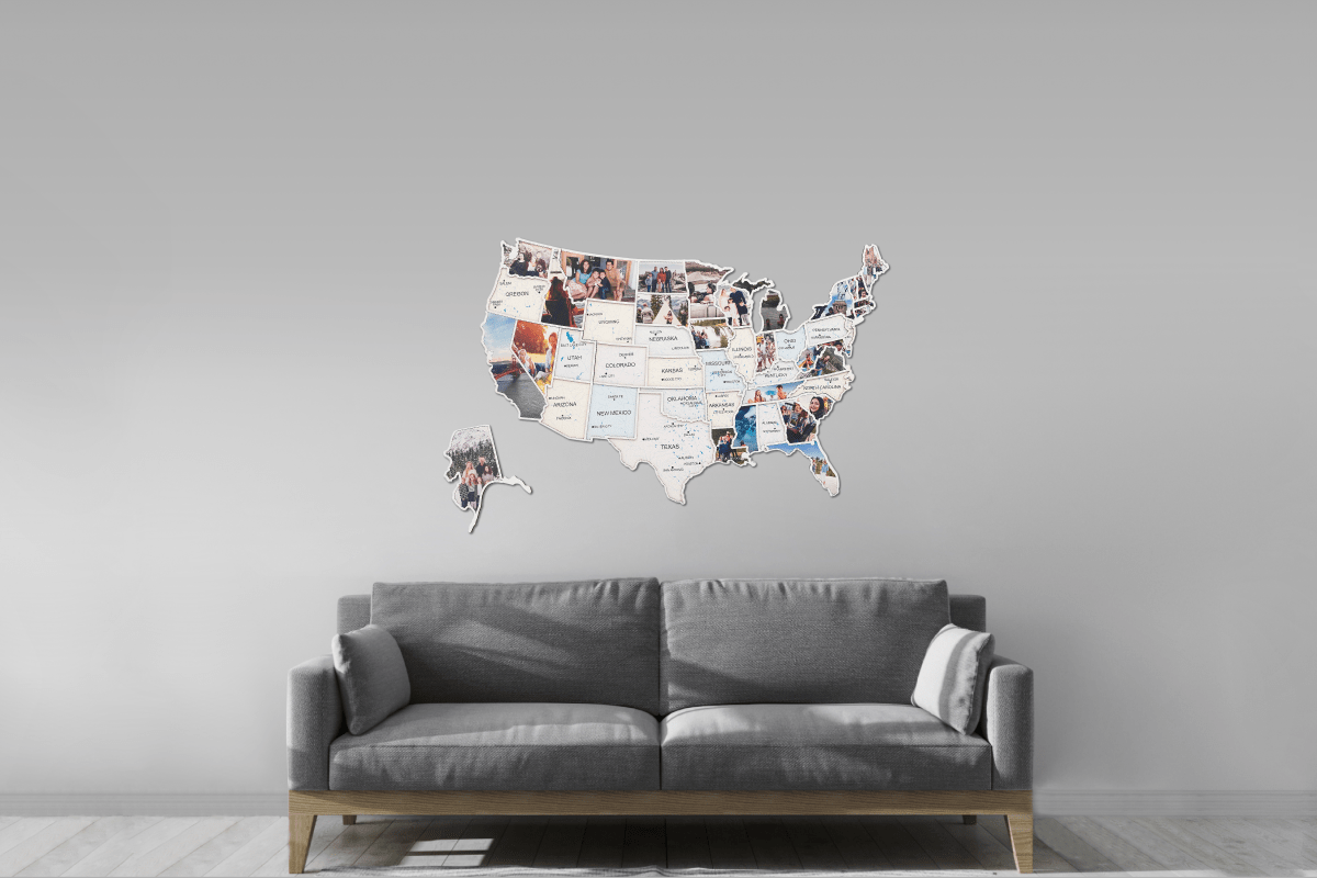 Presenting our personalized USA map, designed for you to trace your adventures with a distinctive touch. By incorporating your photos, you can craft a unique portrayal of your travels throughout the United States.
