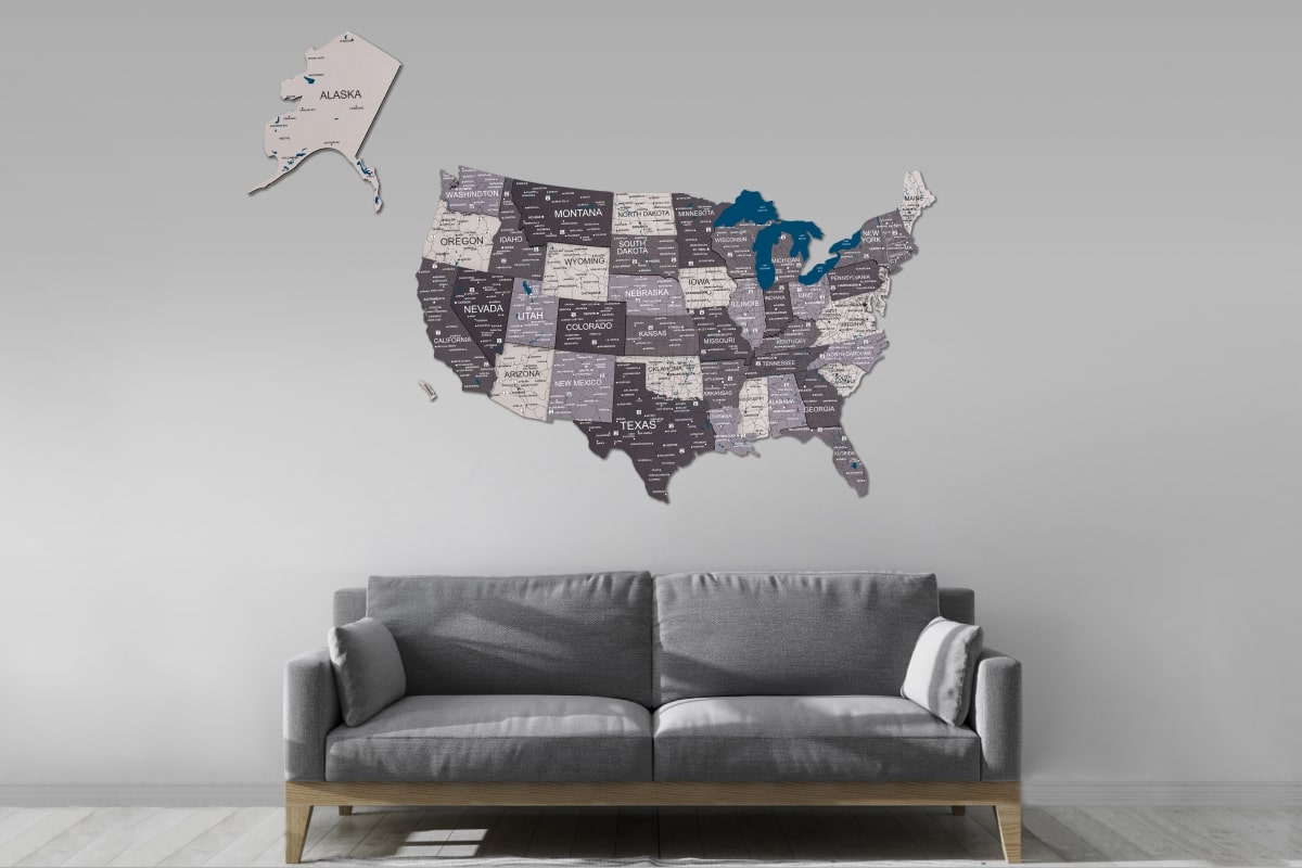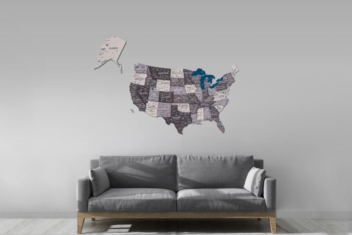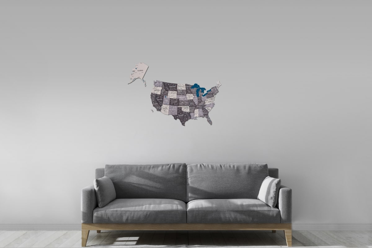 This USA map in 3d features precision laser-cut technology, ensuring that every detail is beautifully represented. The map includes engraved borders, state names, and major cities, providing clarity and educational value. The natural wood finish adds warmth and elegance, making it a striking focal point on any wall. Each piece is meticulously crafted to ensure lasting durability, allowing you to enjoy this stunning artwork for years to come.